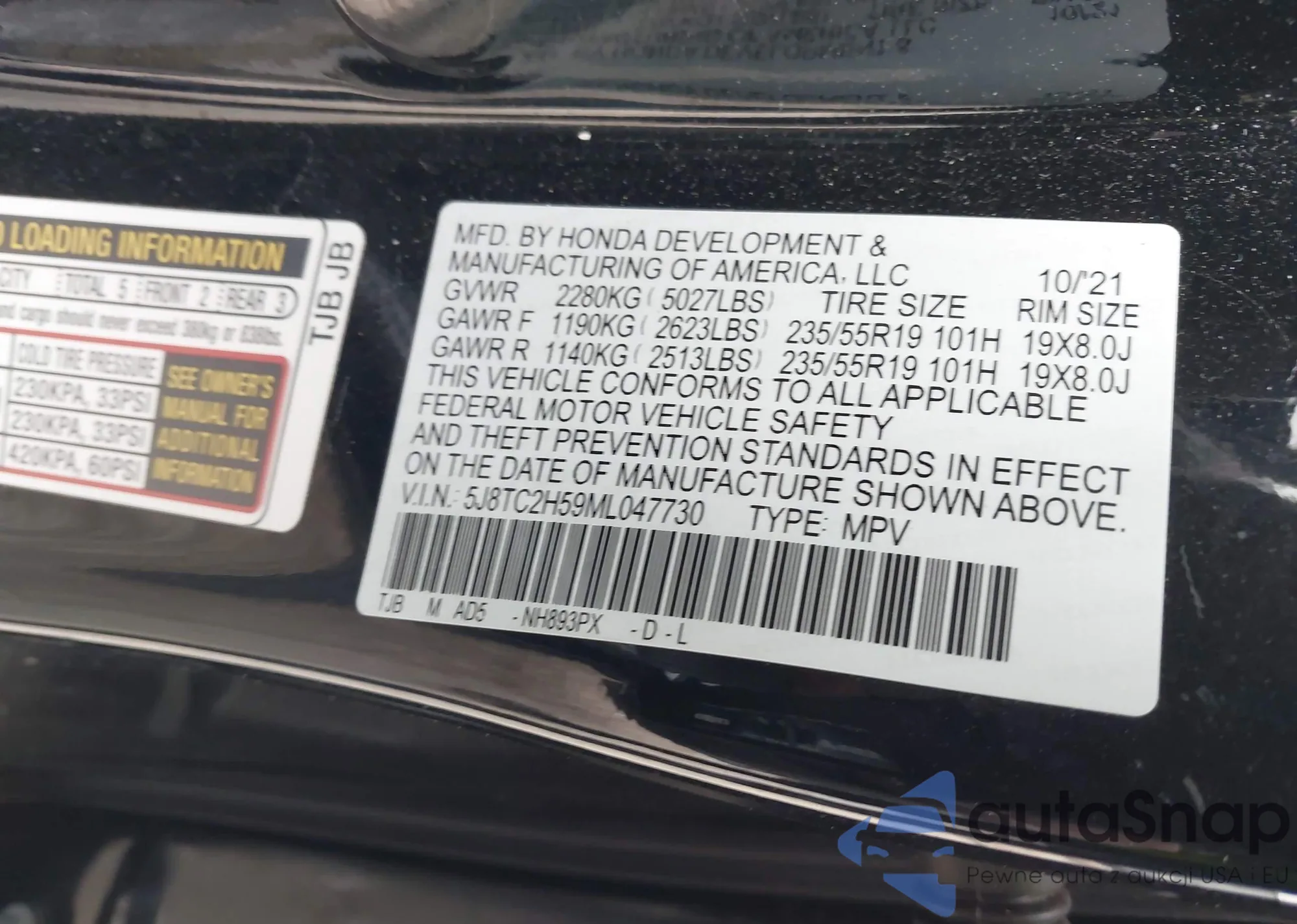 • VIN 5J8TC2H59ML047730