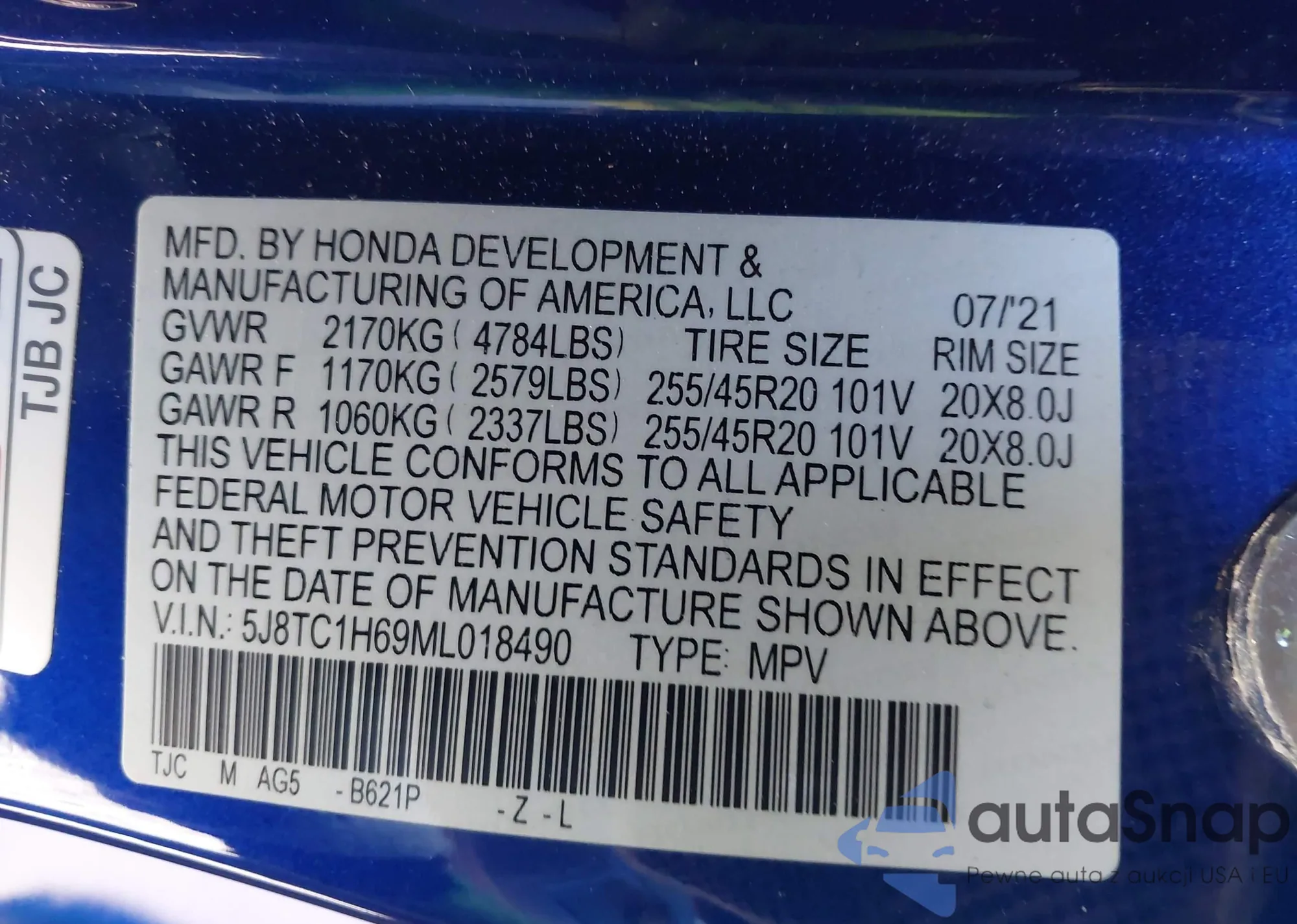 • VIN 5J8TC1H69ML018490