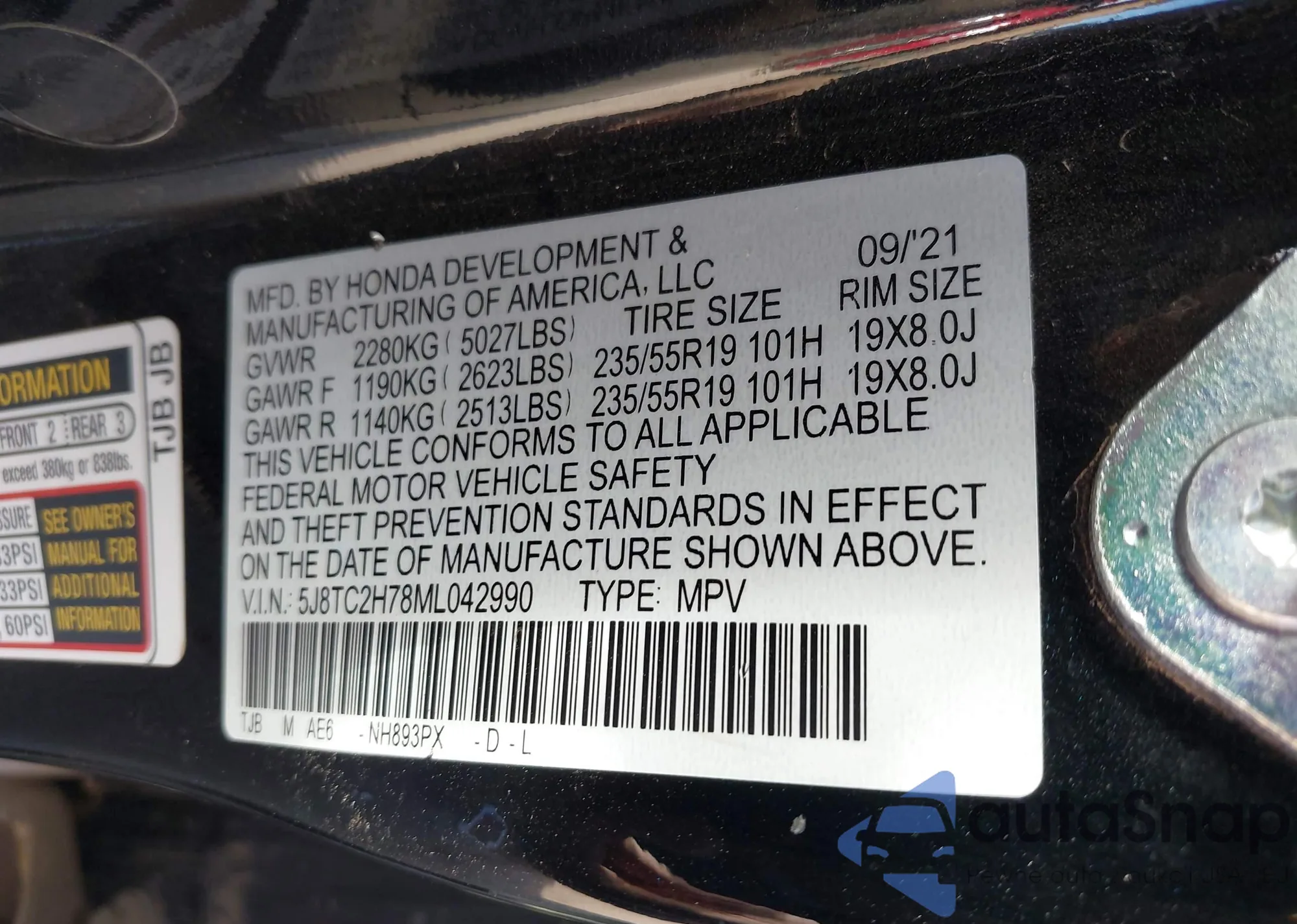 • VIN 5J8TC2H78ML042990
