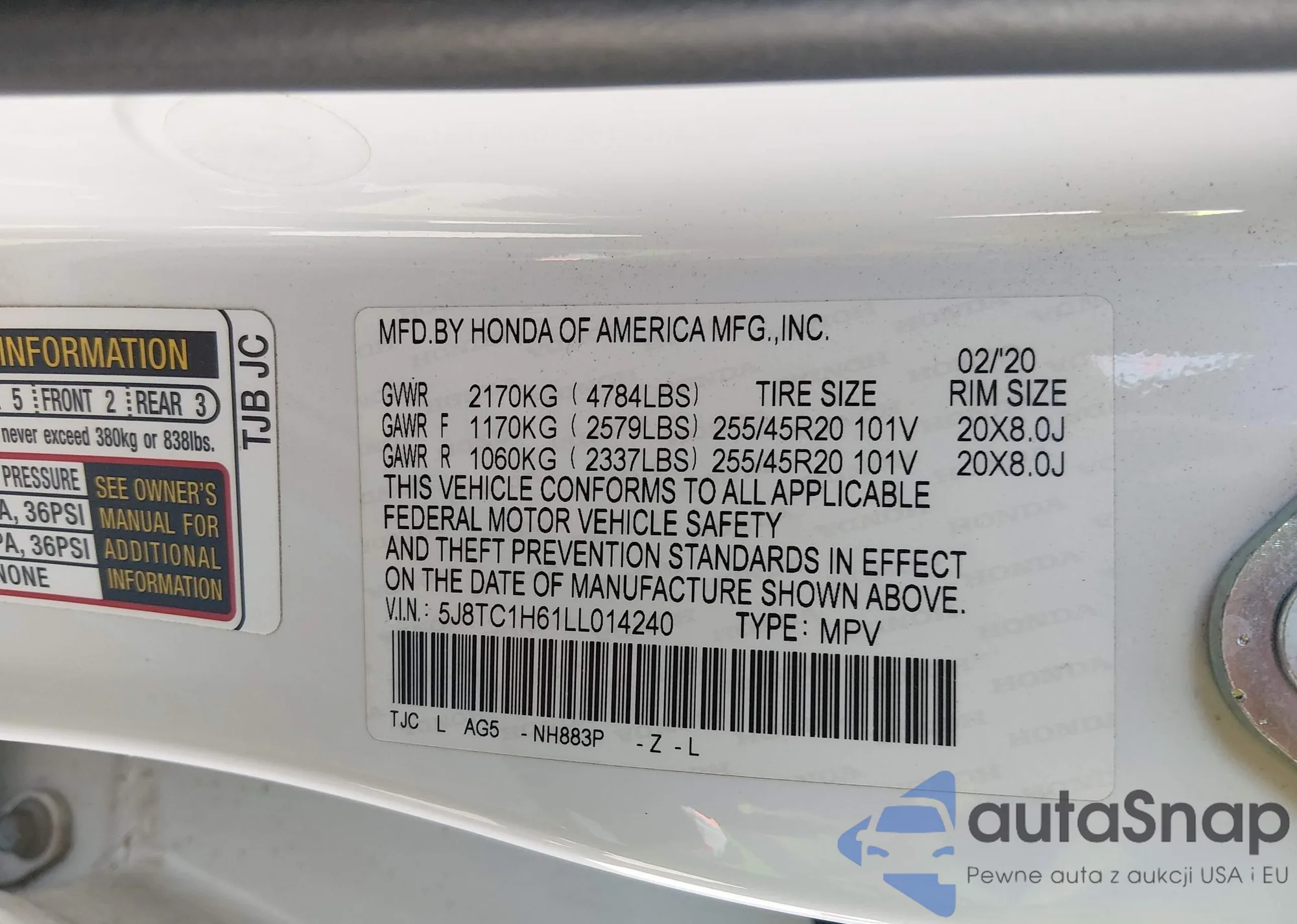 • VIN 5J8TC1H51LL002967