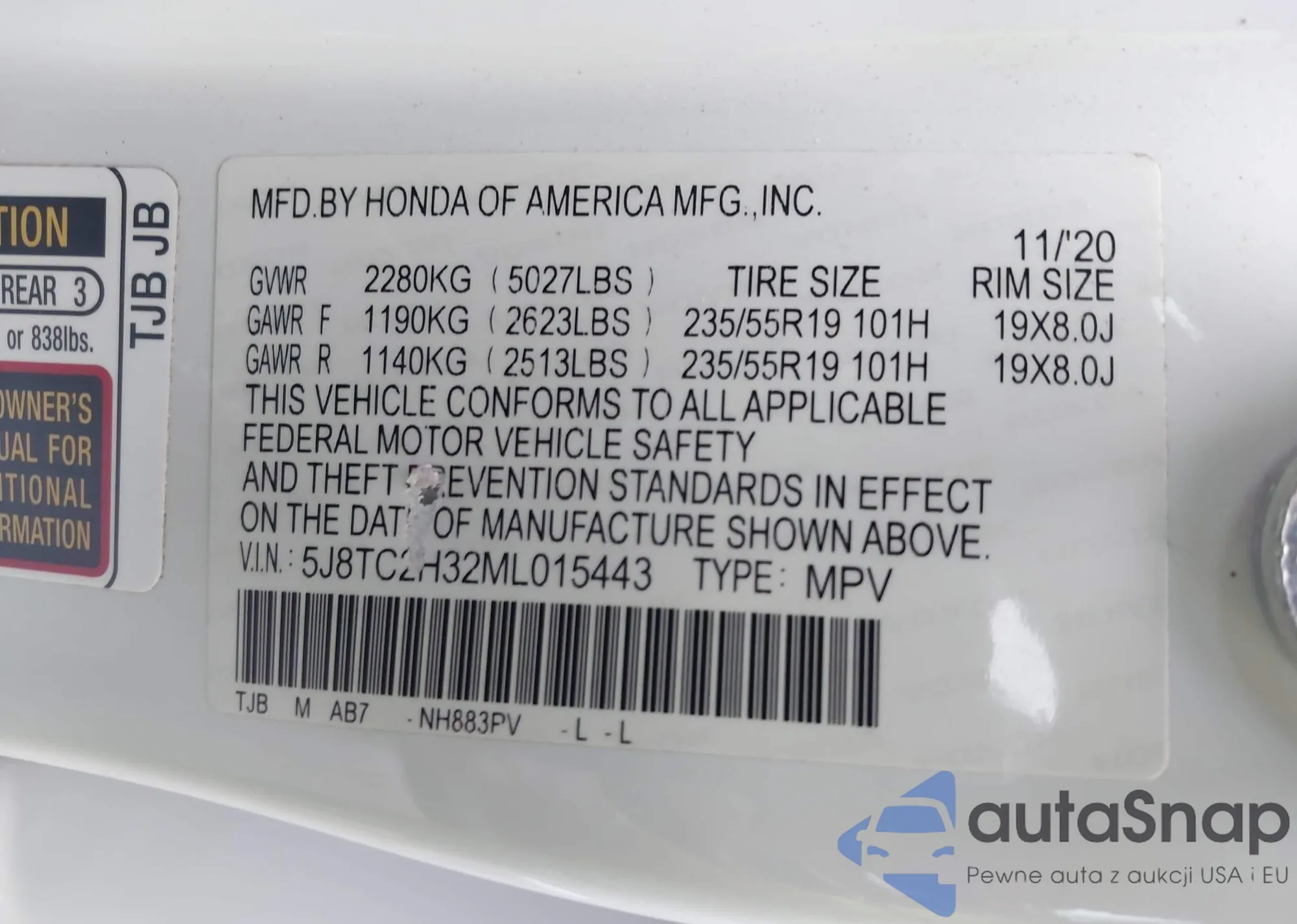 • VIN 5J8TC2H32ML015443