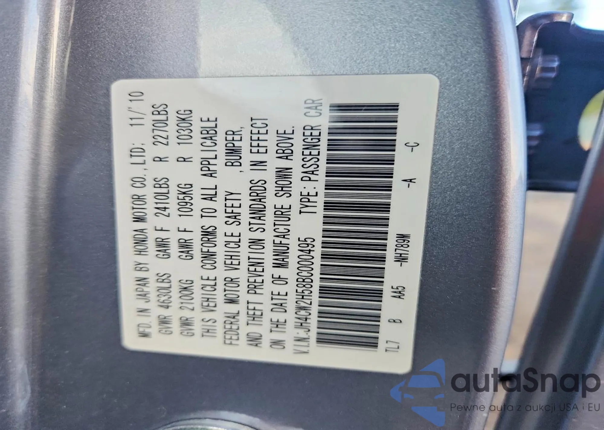 • VIN JH4CW2H58BC000495