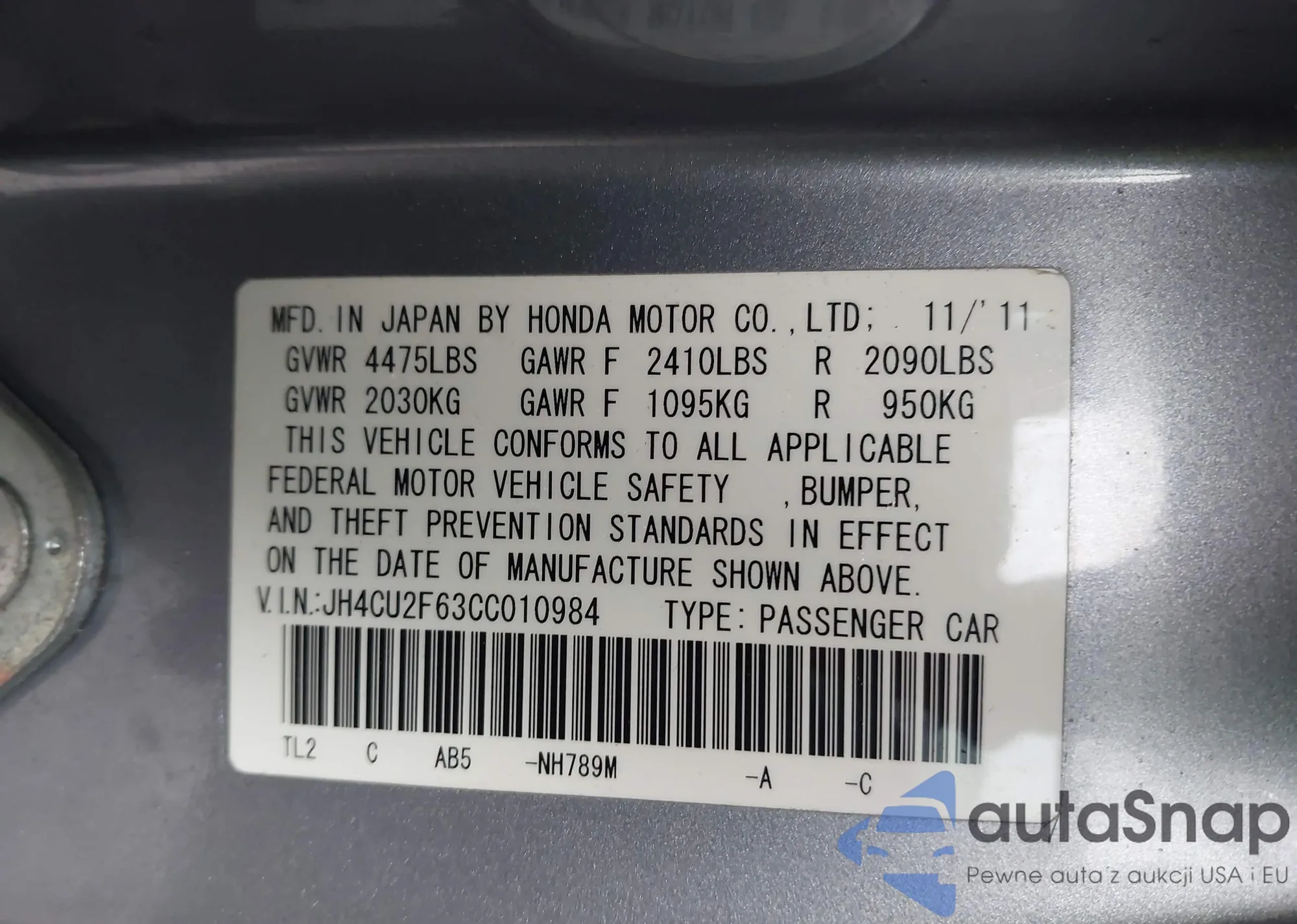 • VIN JH4CU2F47CC001204