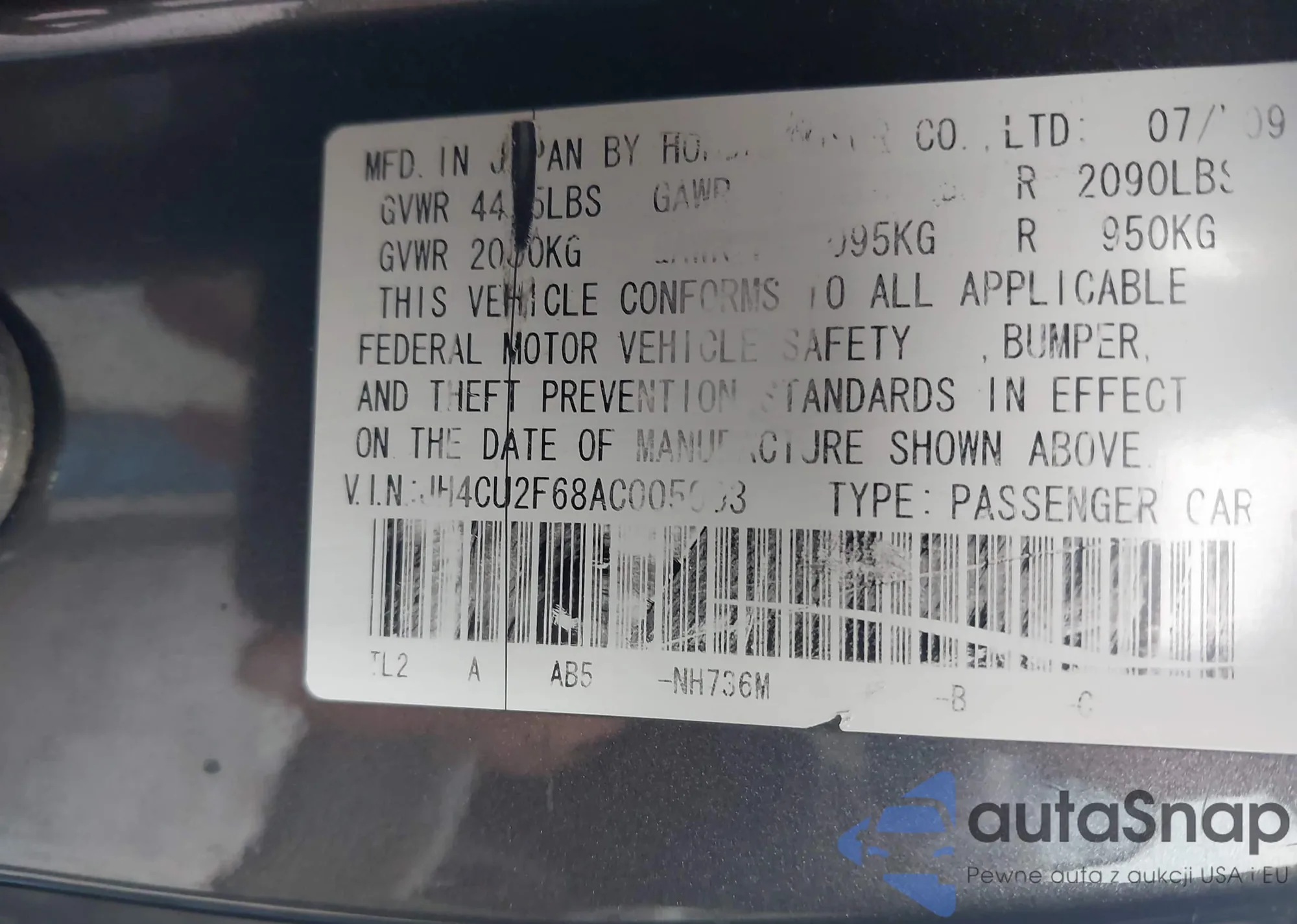 • VIN JH4CU2F68AC005003
