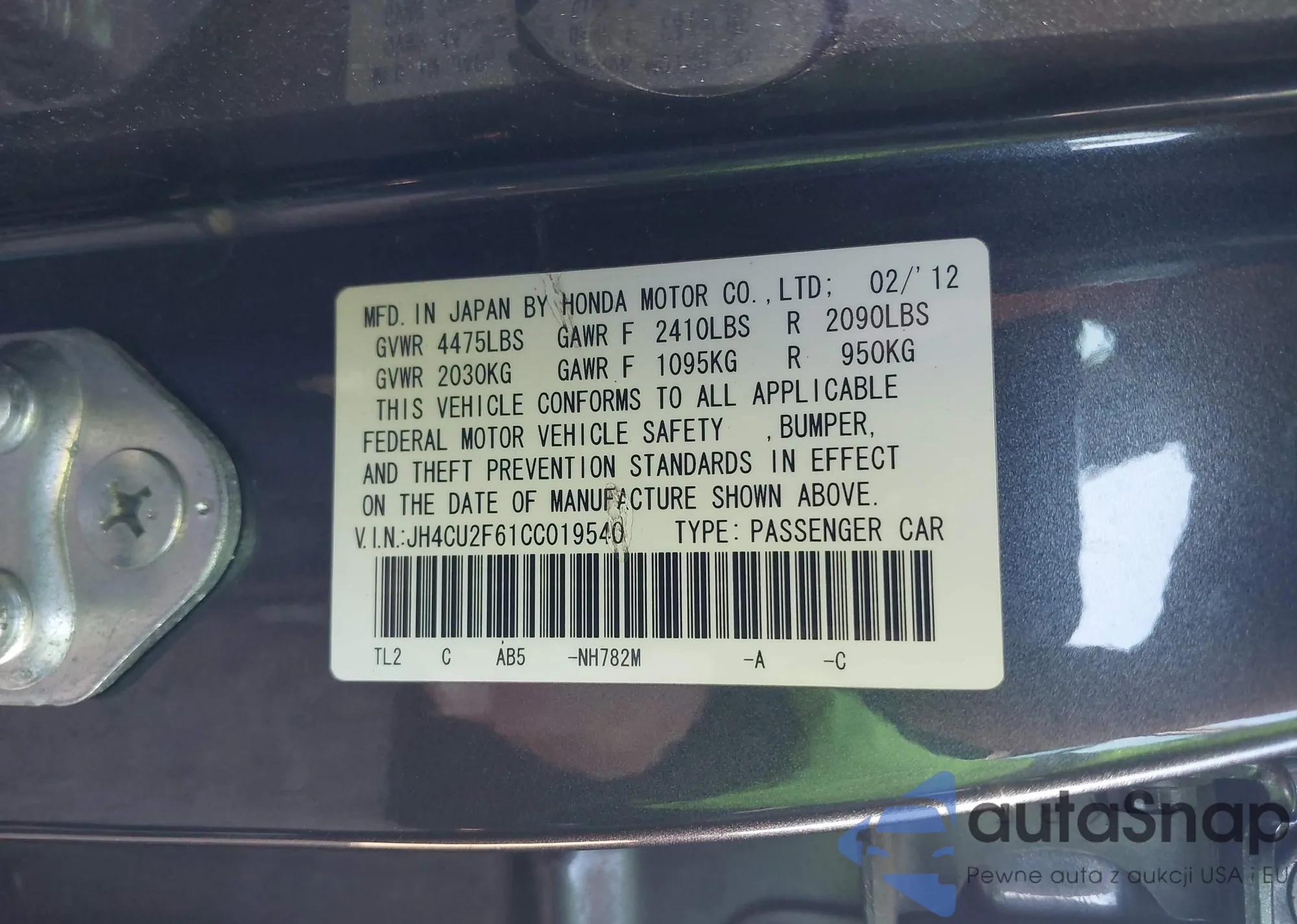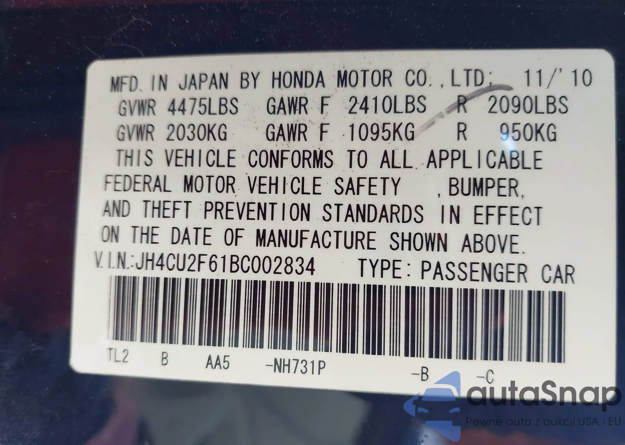 • VIN JH4CU2F61BC002834