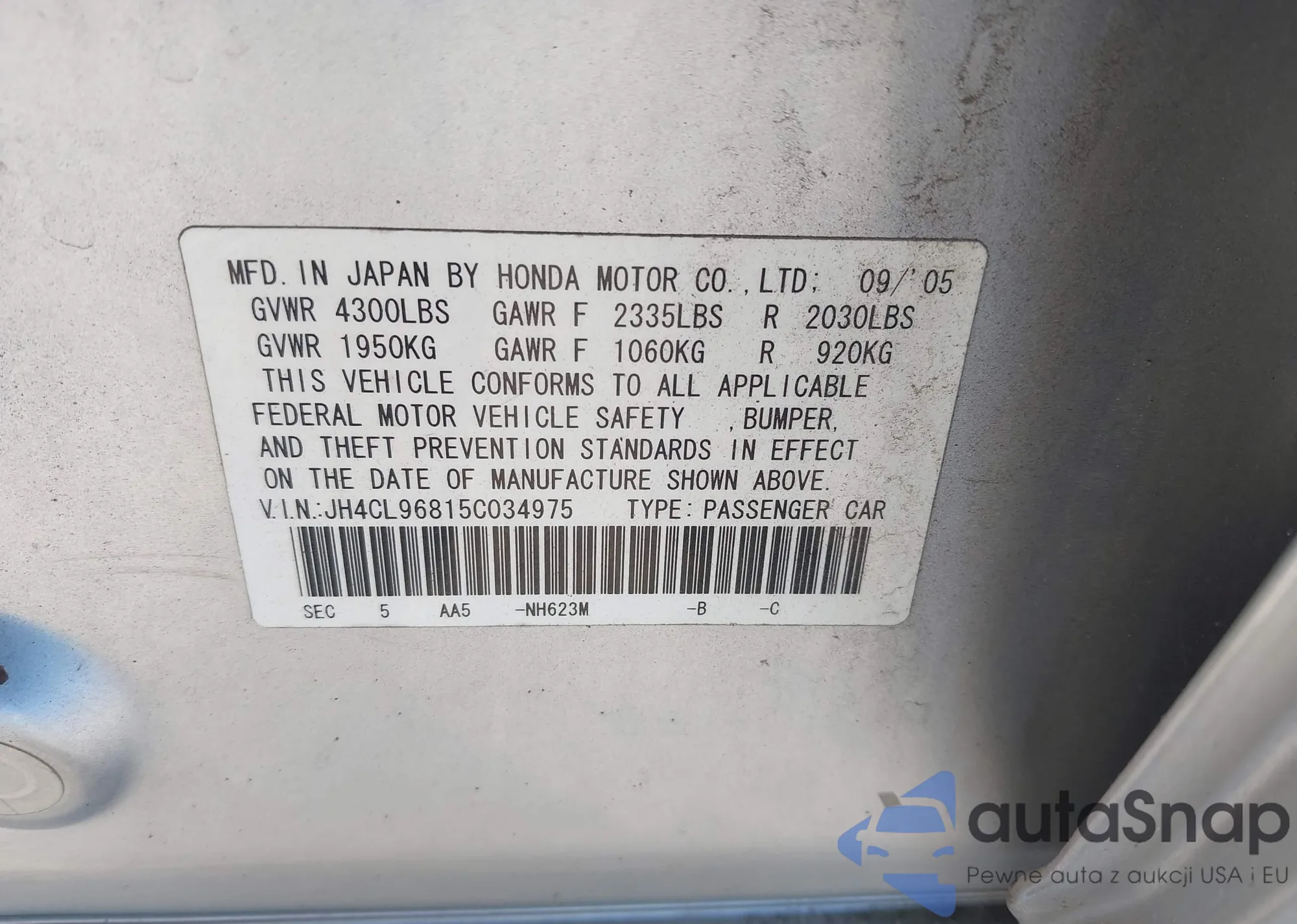 LOT: 44503342 VIN: JH4CL96815C034975