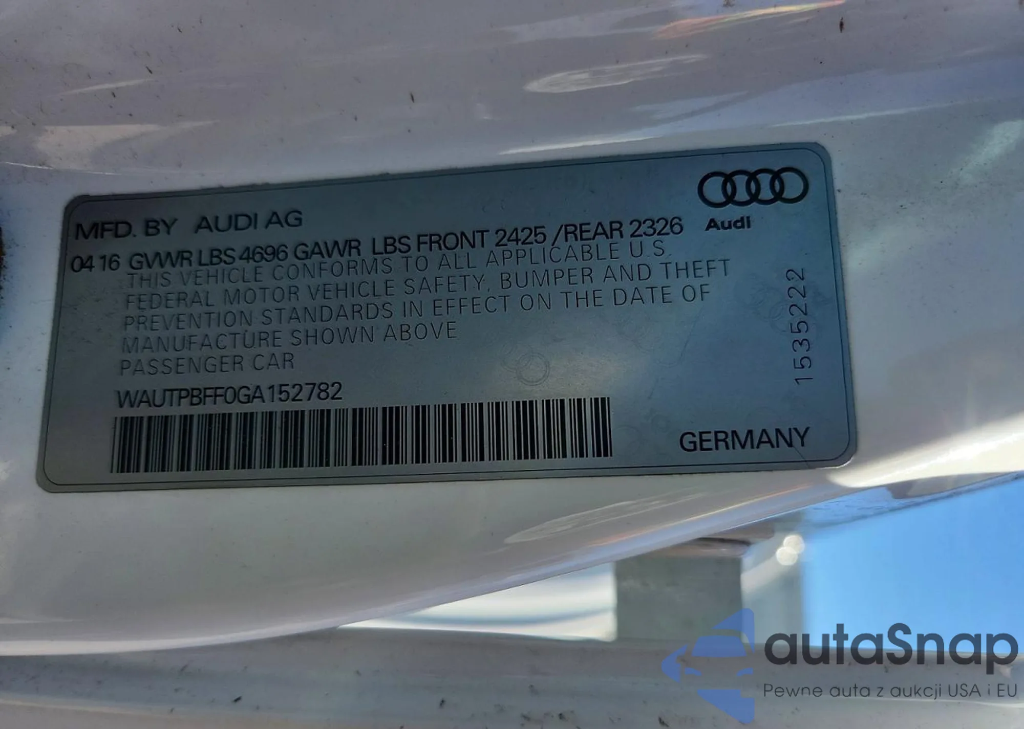 • VIN WAUTPBFF0GA152782
