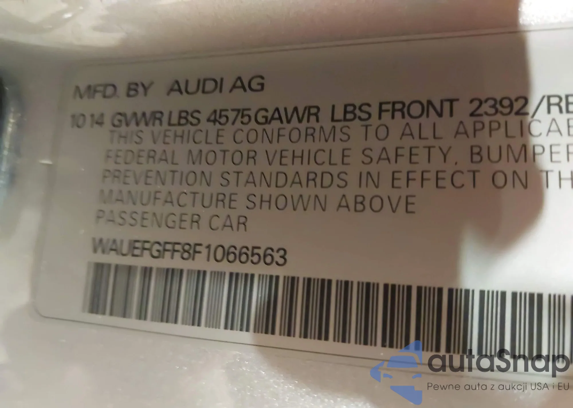 LOT: 44345204 VIN: WAUEFGFF8F1066563