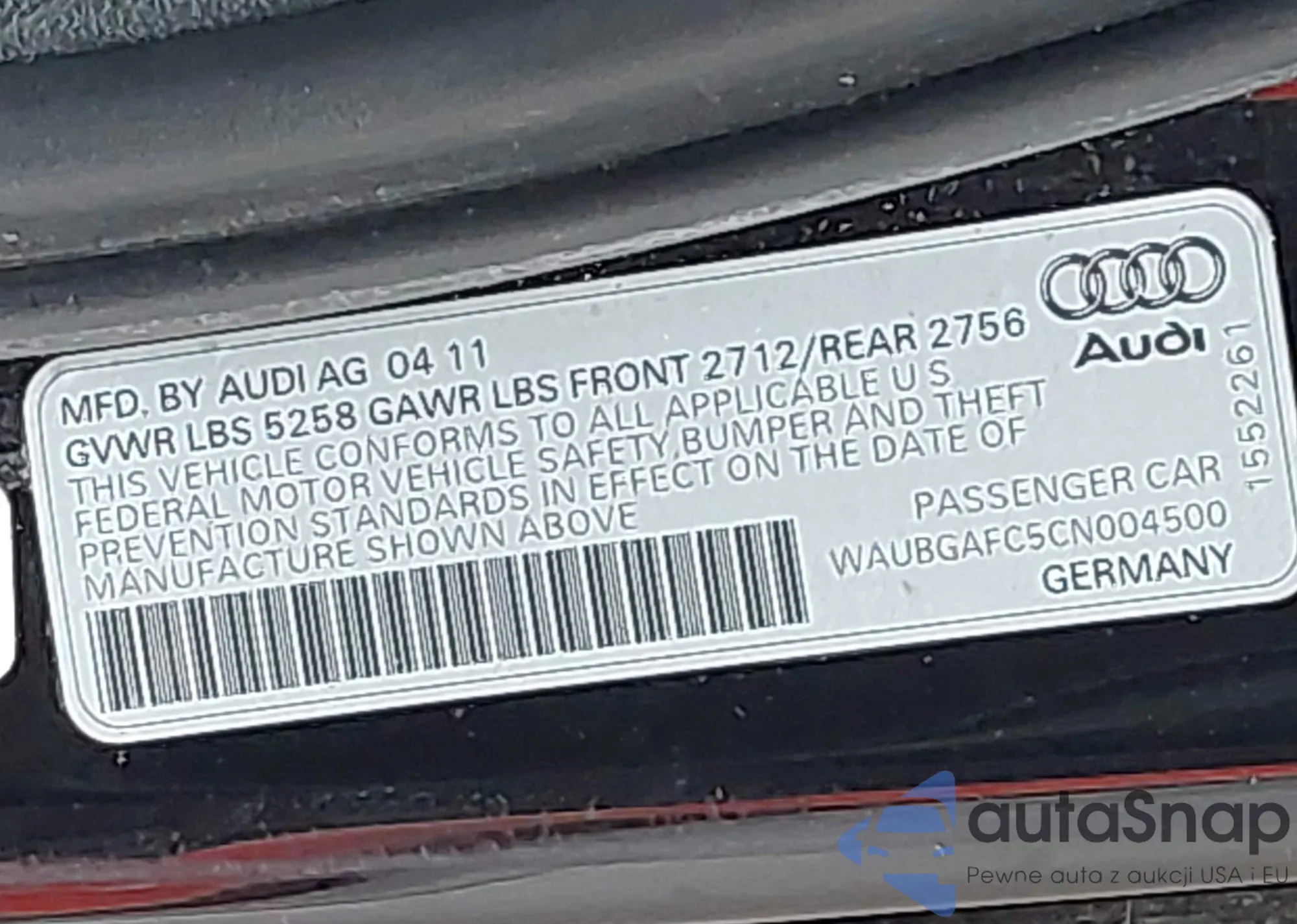 LOT: 44208737 VIN: WAUBGAFC5CN004500