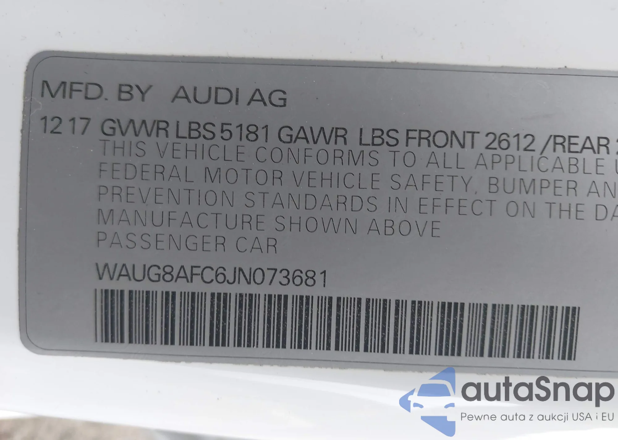 • VIN WAUG8AFC6JN073681