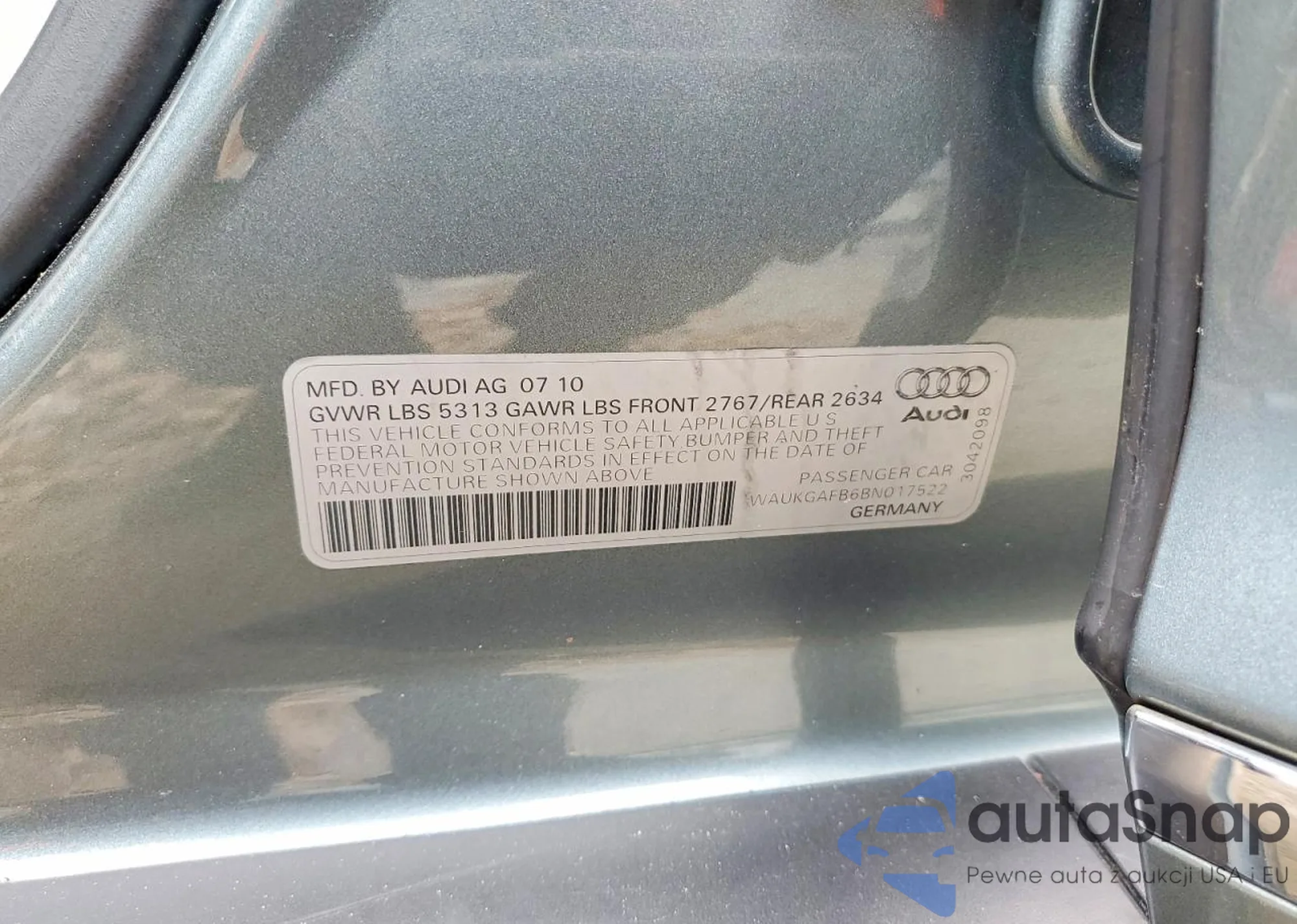 • VIN WAUKGAFB6BN017522