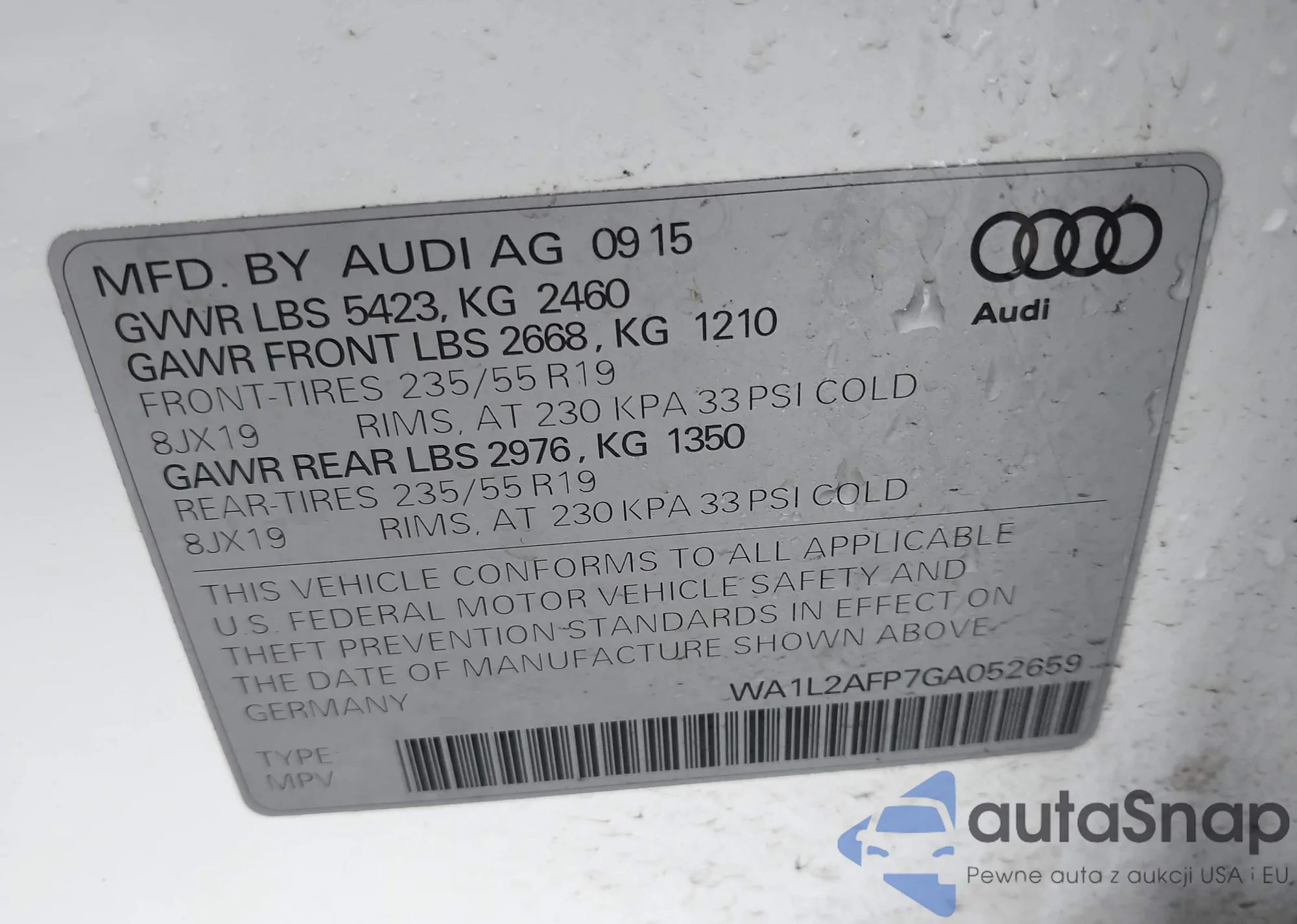 LOT: 44161397 VIN: WA1ANAFY6K2053618