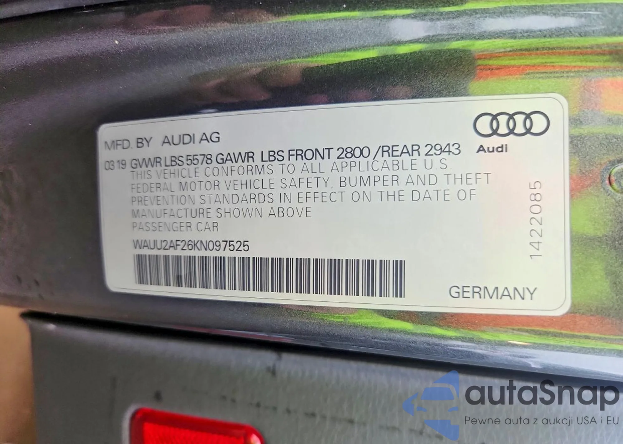 • VIN WAUU2AF26KN097525