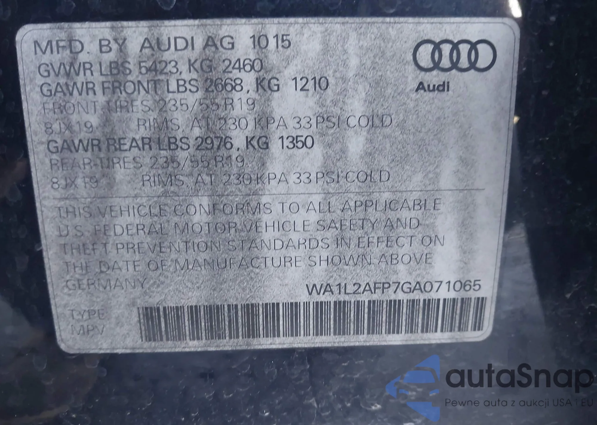 LOT: 44056858 VIN: WA1LFAFP5FA050671