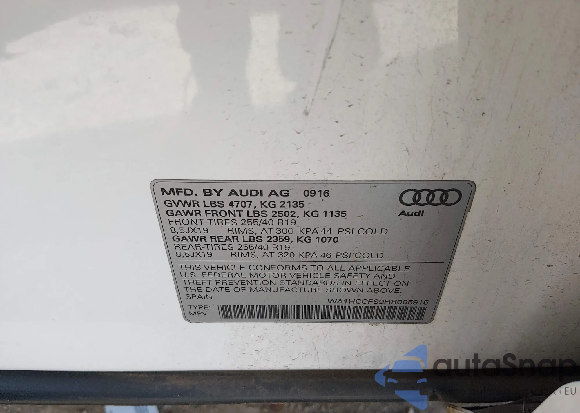 • VIN WA1HCCFS9HR005915