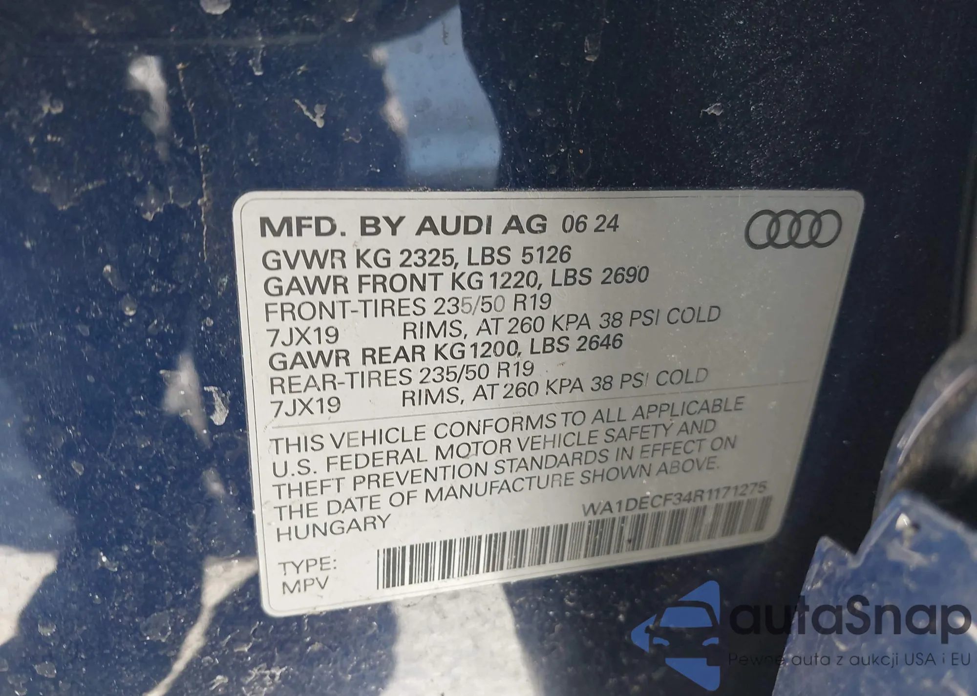 LOT: 44422456 VIN: WA1EECF31R1097379