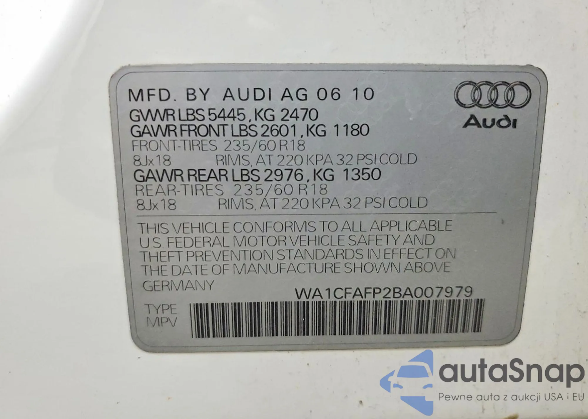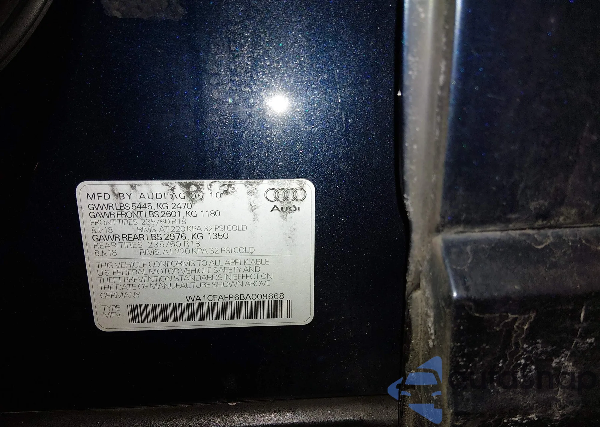 LOT: 44405697 VIN: WA1CFAFP6BA009668