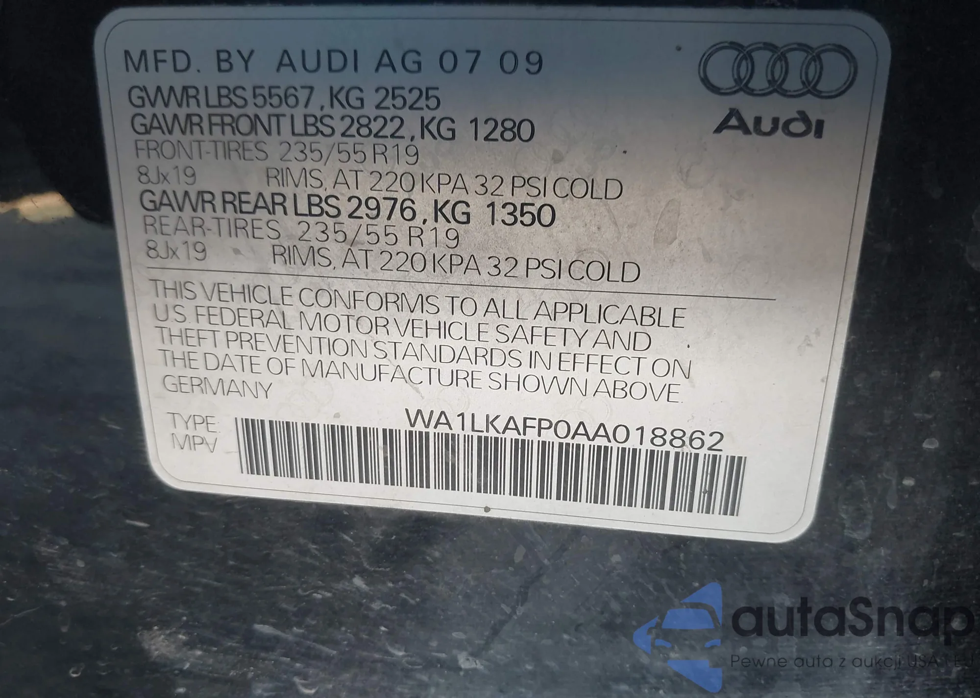 LOT: 44351174 VIN: WA1LKAFP0AA018862