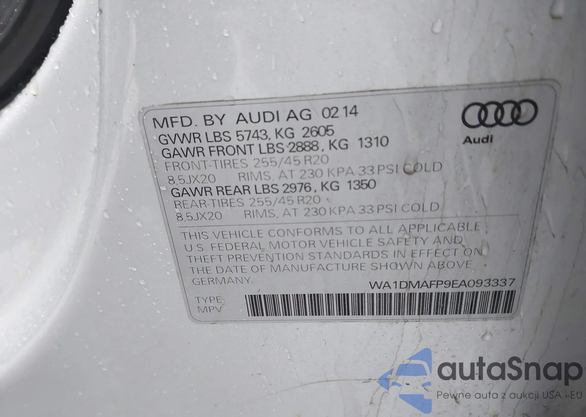 LOT: 44361348 VIN: WA1DMAFP9EA093337