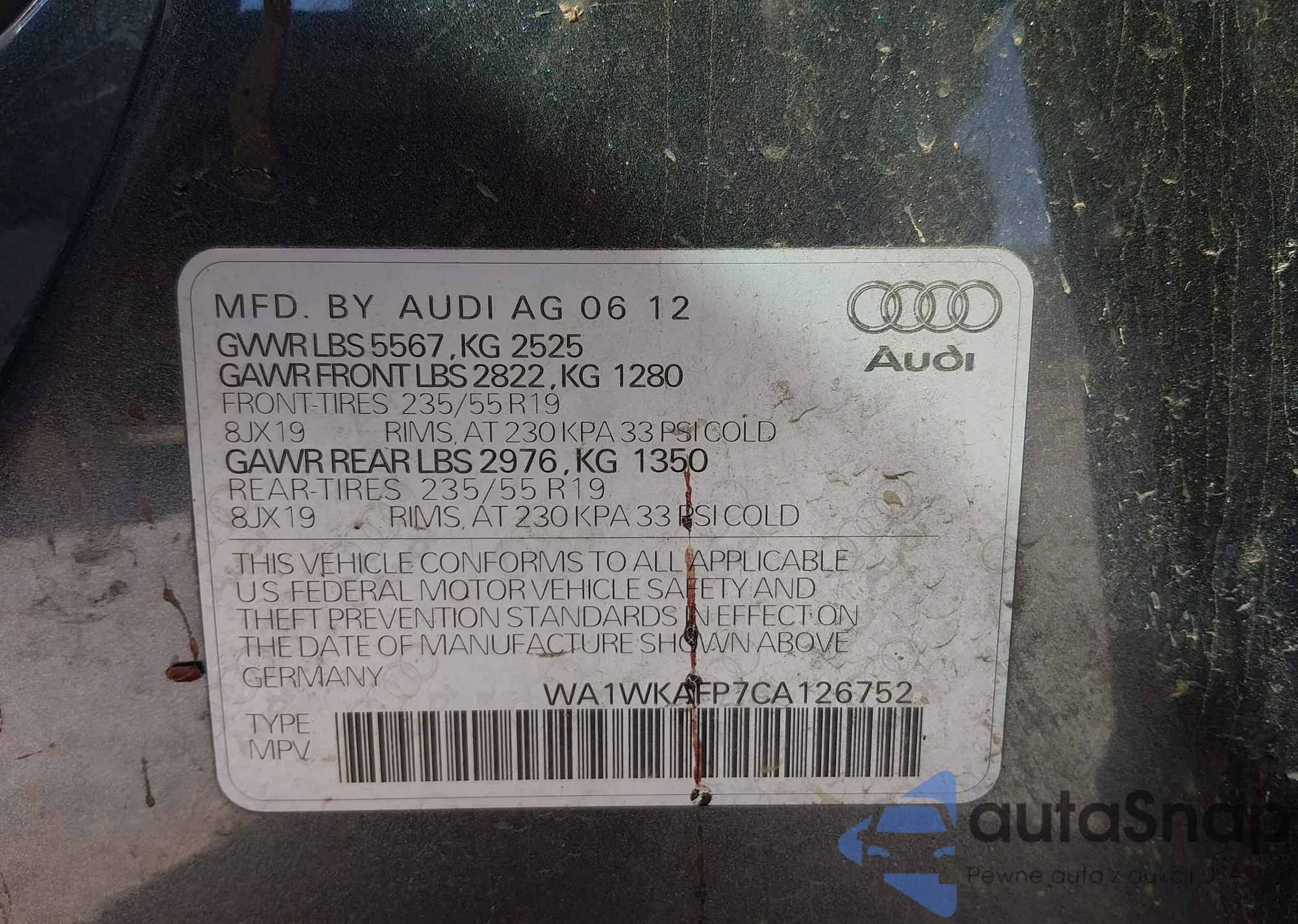 LOT: 44364804 VIN: WA1CKAFP4AA071368