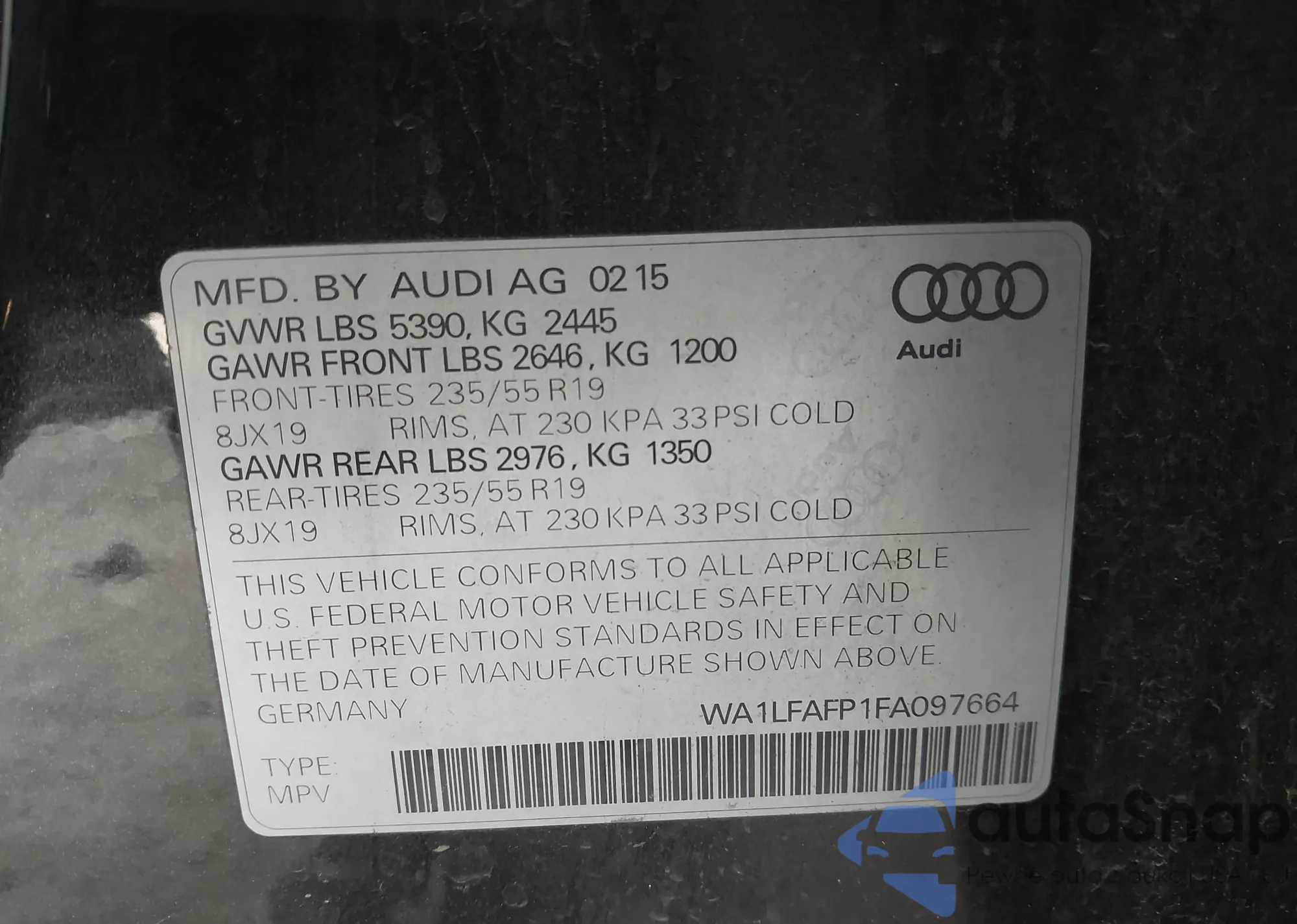 • VIN WA1LFAFP1FA097664