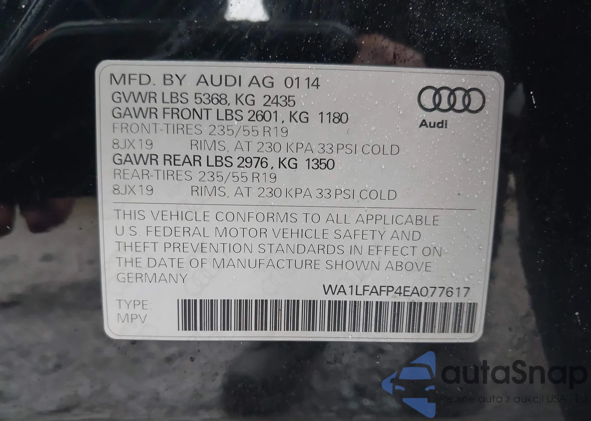 LOT: 44403325 VIN: WA1LFAFP4EA077617