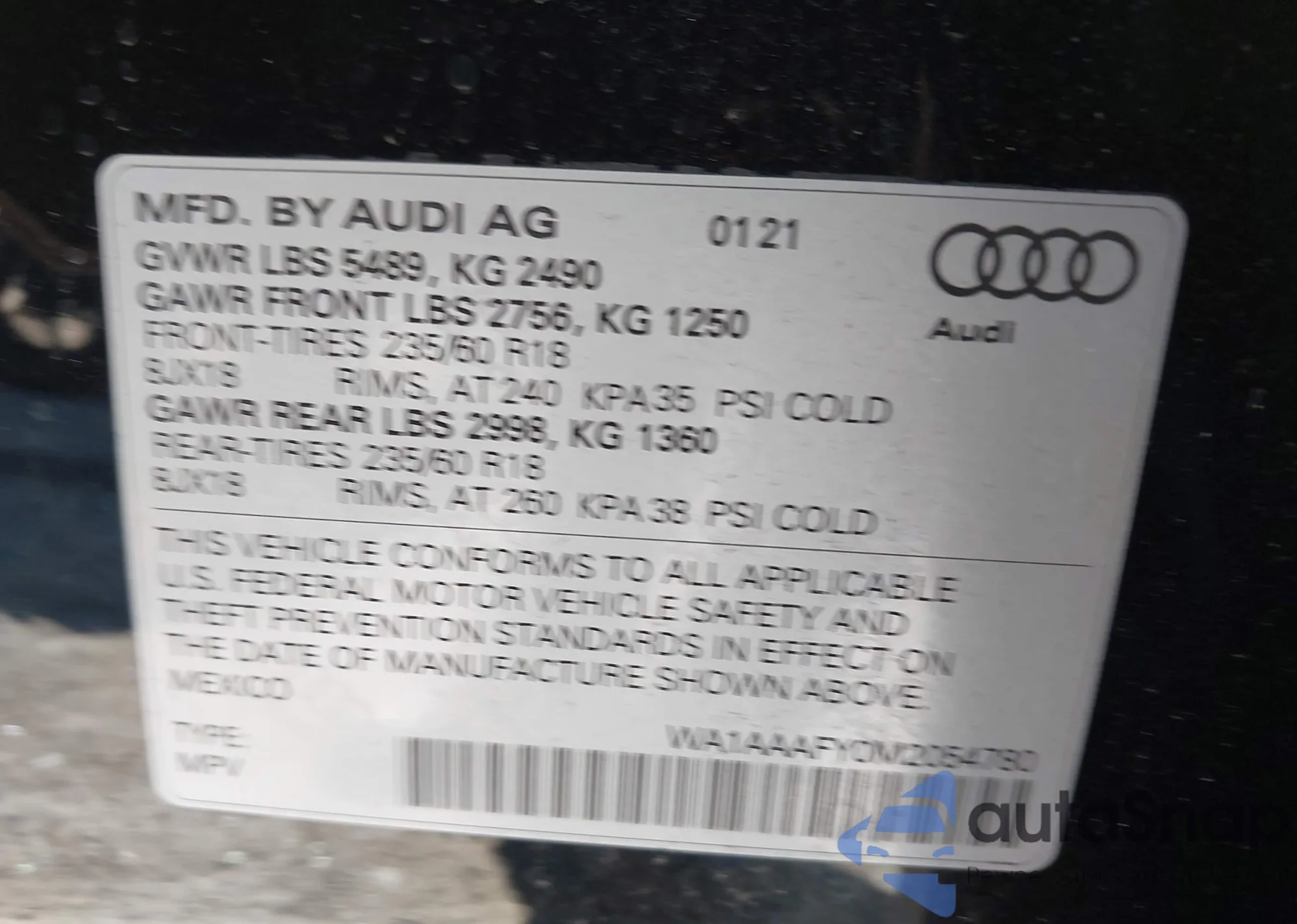 LOT: 43867246 VIN: WA1BAAFY7M2018167