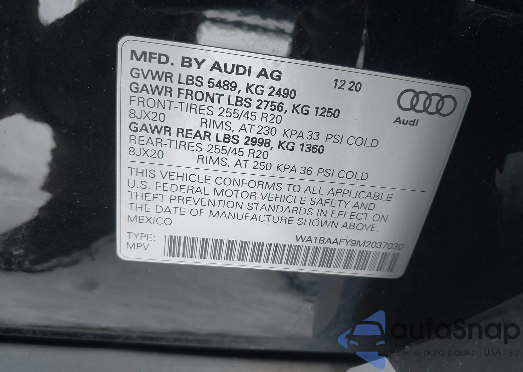 LOT: 44023024 VIN: WA1BAAFY9M2037030