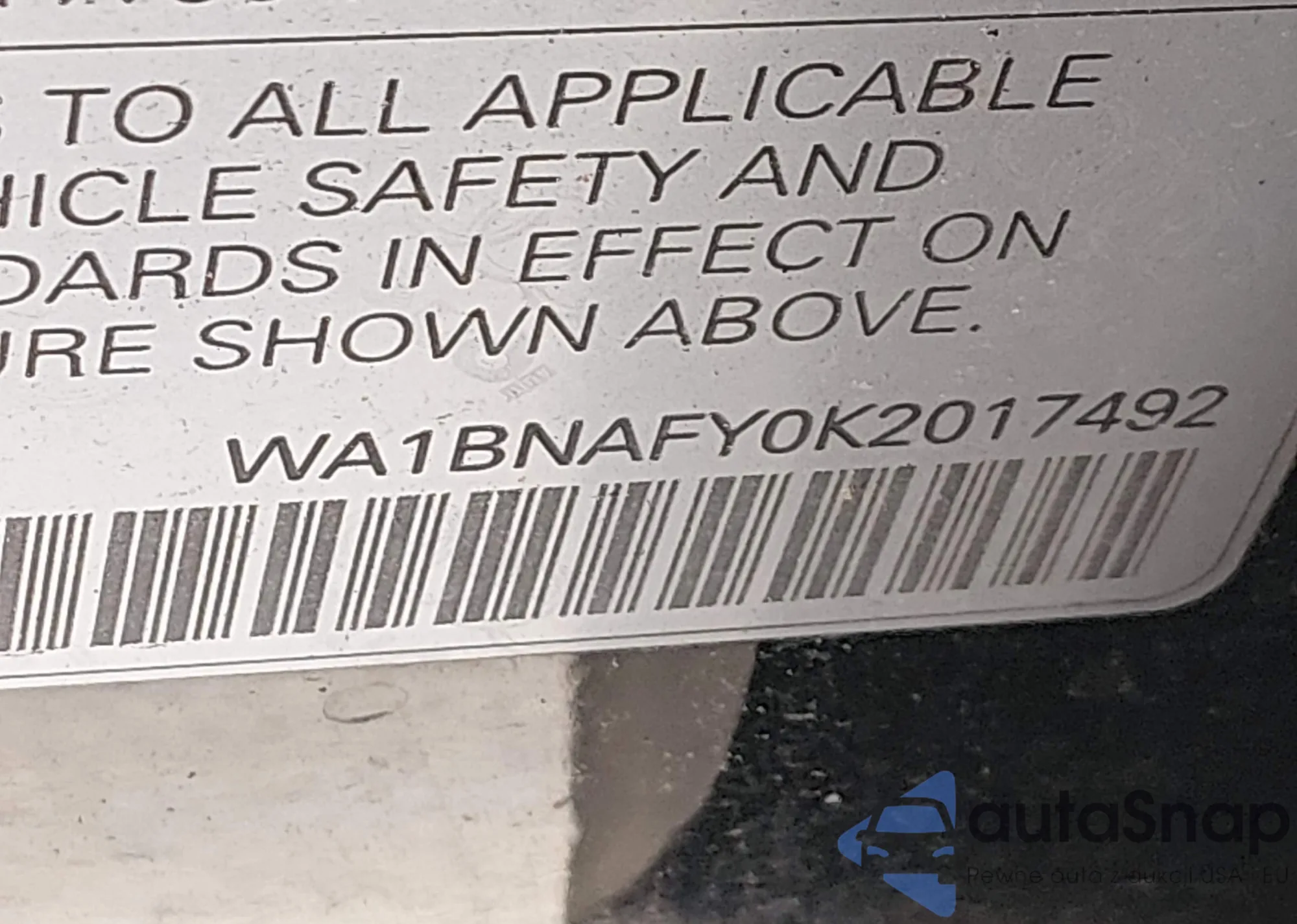 • VIN WA1BNAFY0K2017492