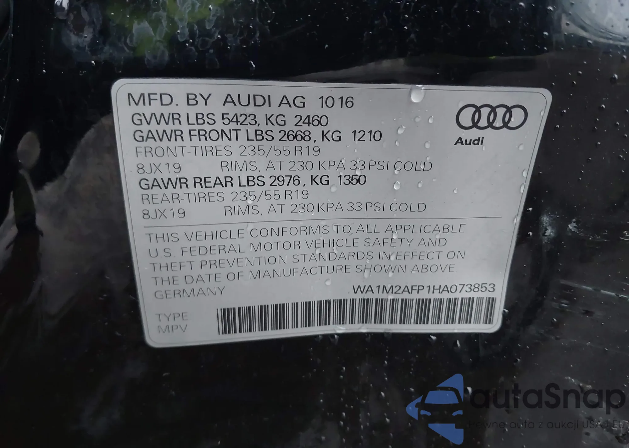 LOT: 43820797 VIN: WA1M2AFP1HA073853