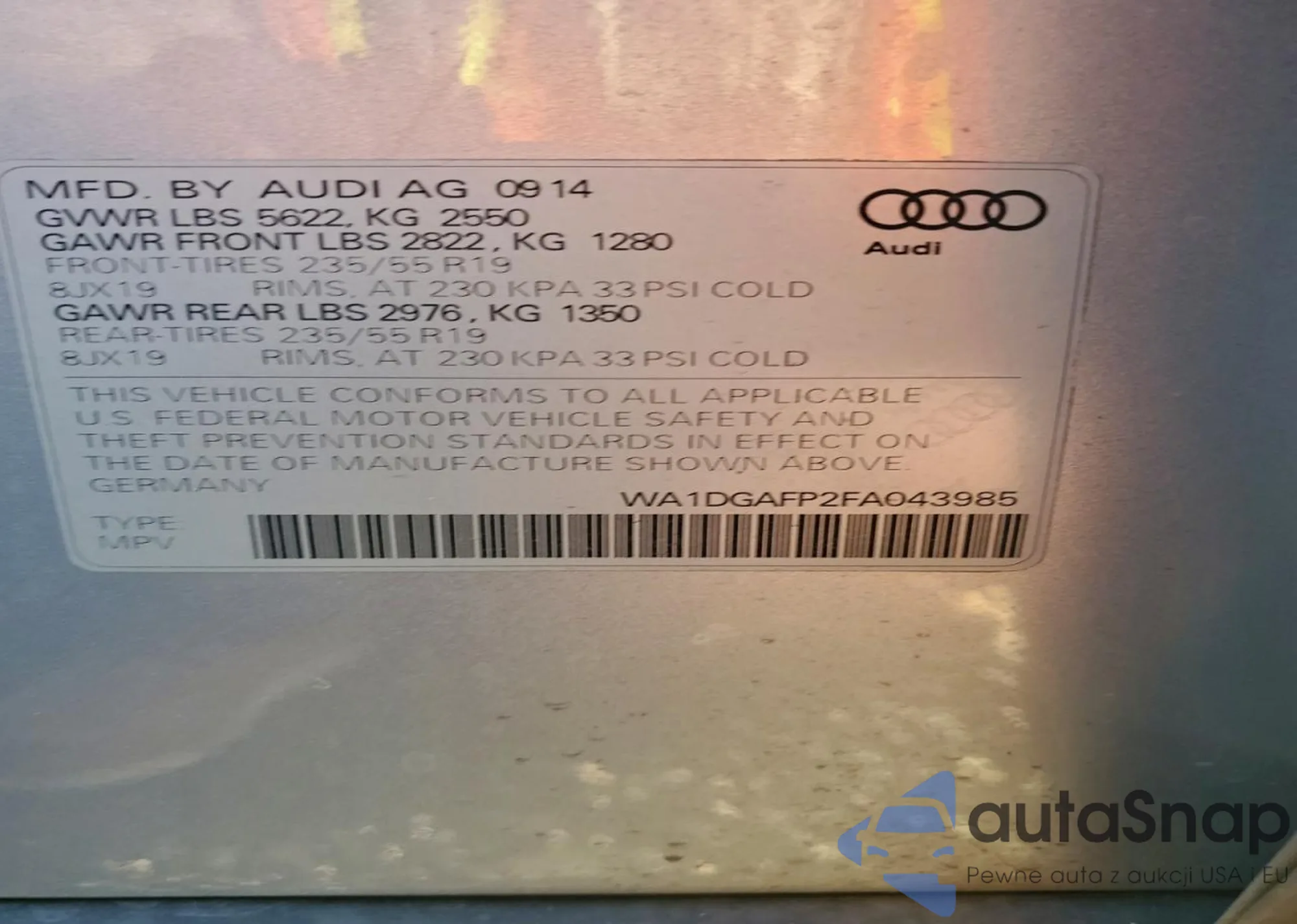 LOT: 97829735 VIN: WA1DGAFP2FA043985