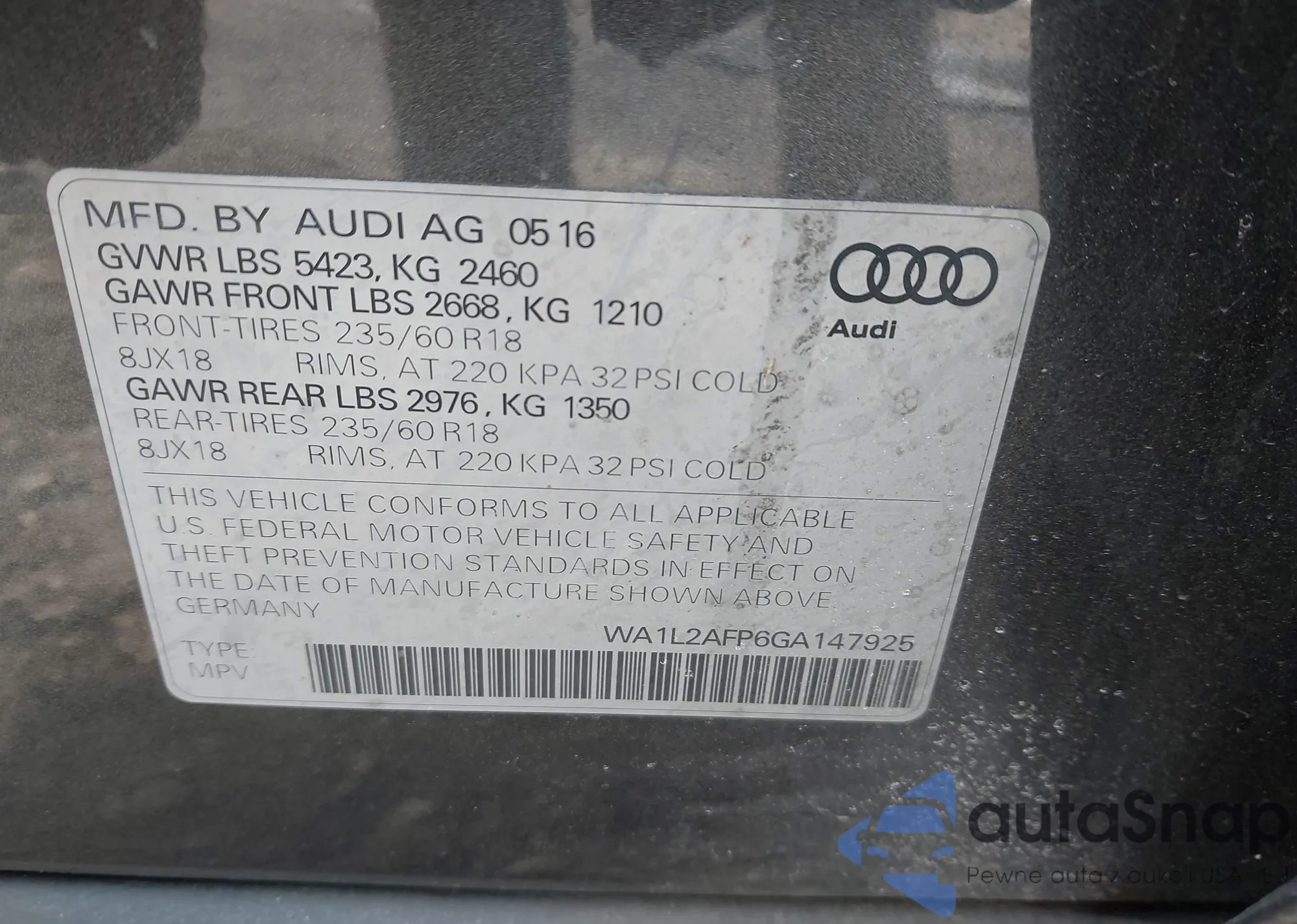 • VIN WA1L2AFP6GA147925