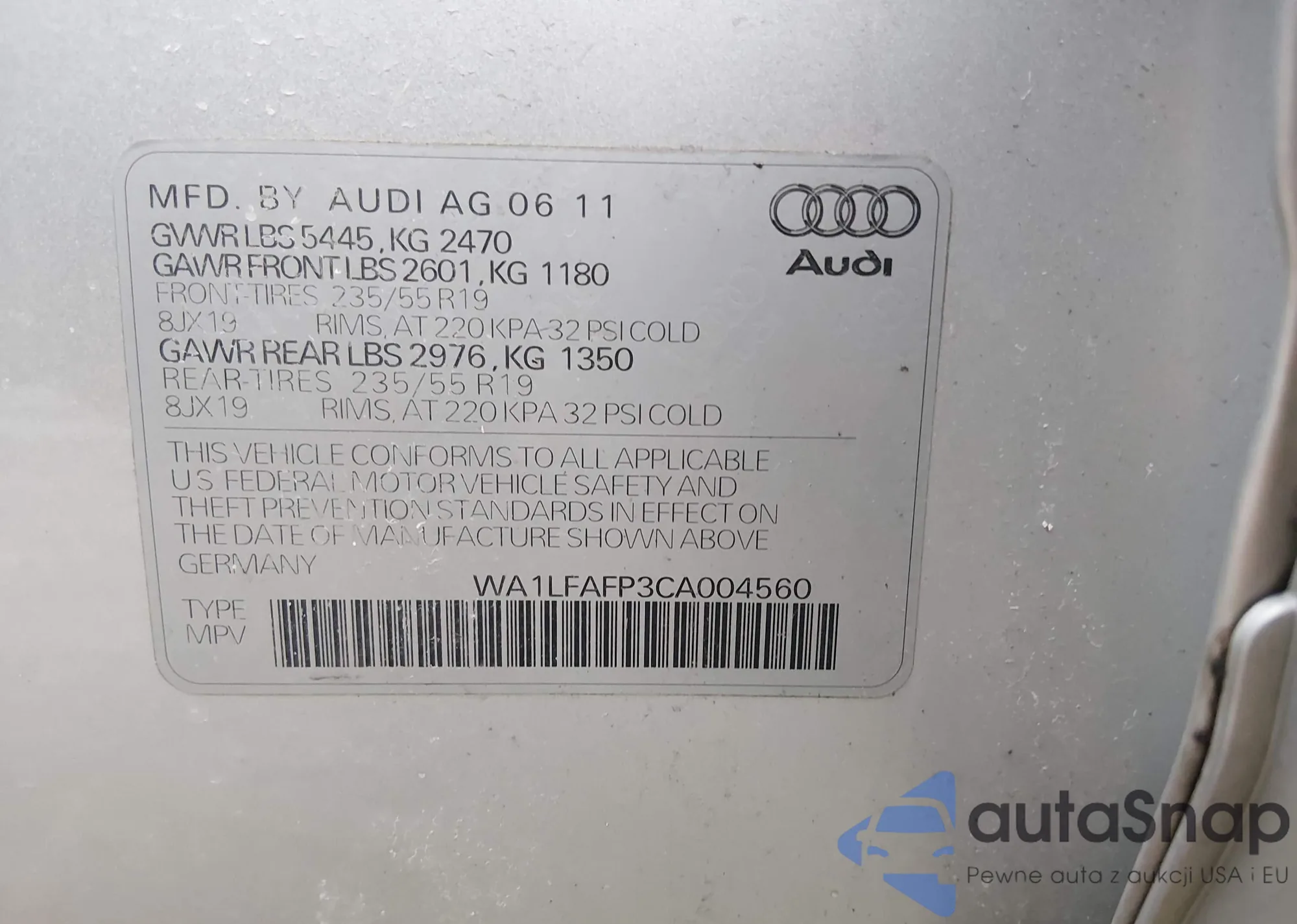 LOT: 44480894 VIN: WA1LFAFP3CA004560