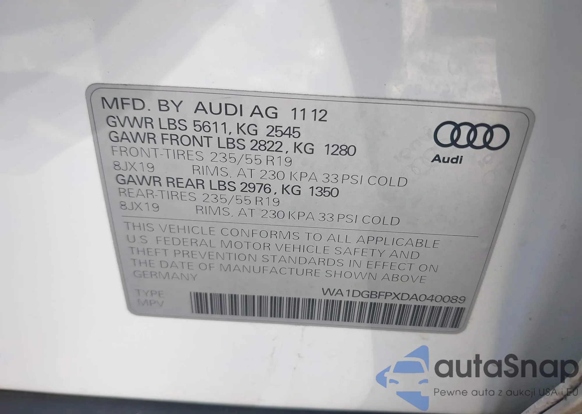 LOT: 44384527 VIN: WA1DGBFPXDA040089