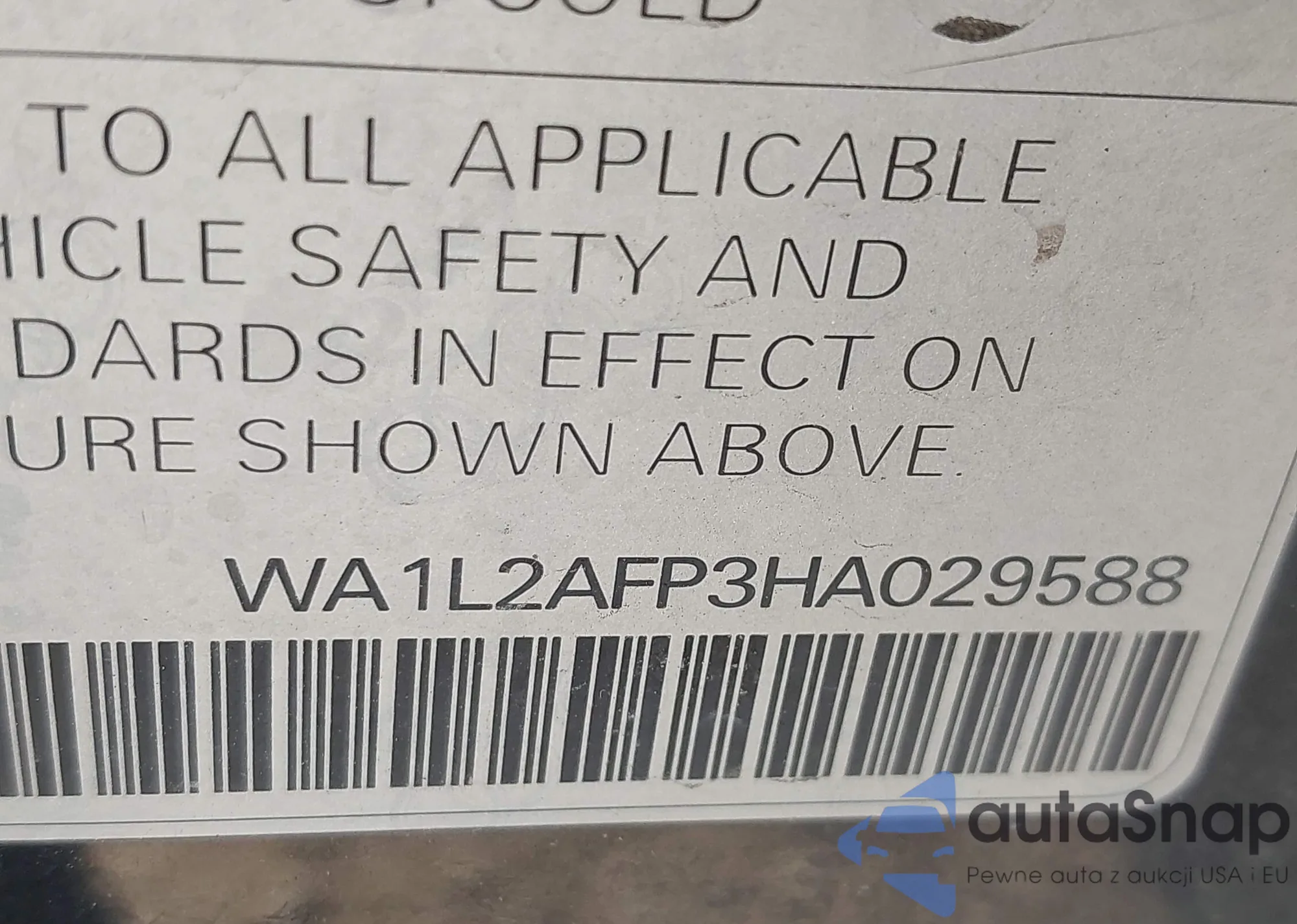 LOT: 44325590 VIN: WA1L2AFP3HA029588