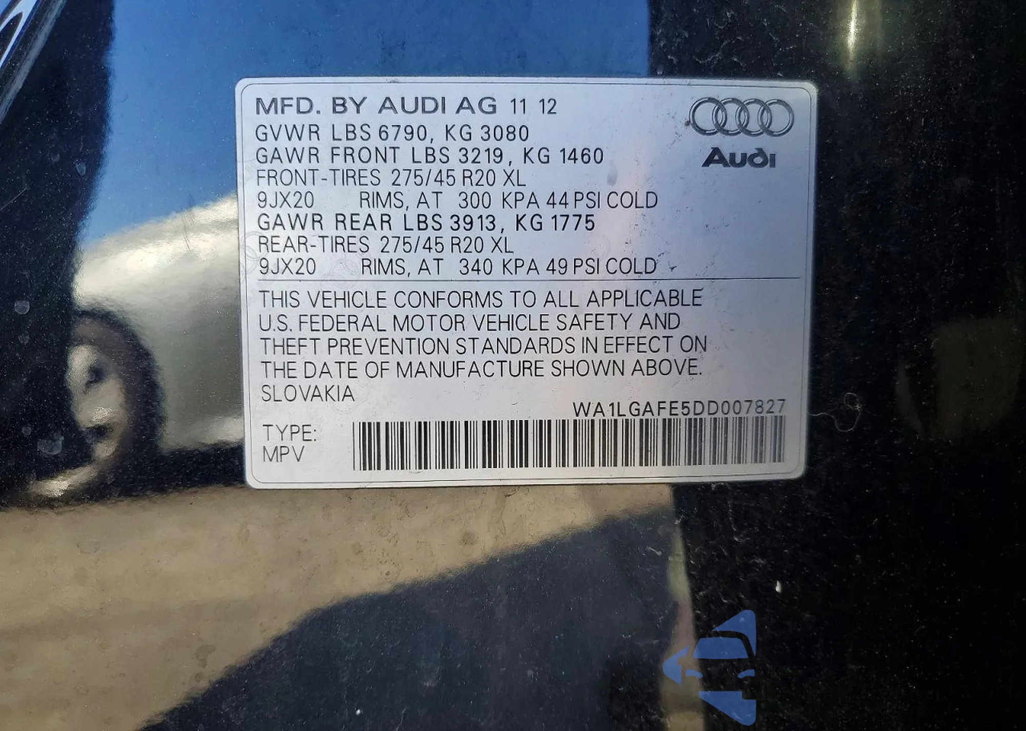 LOT: 76940215 VIN: WA1LGAFE5DD007827