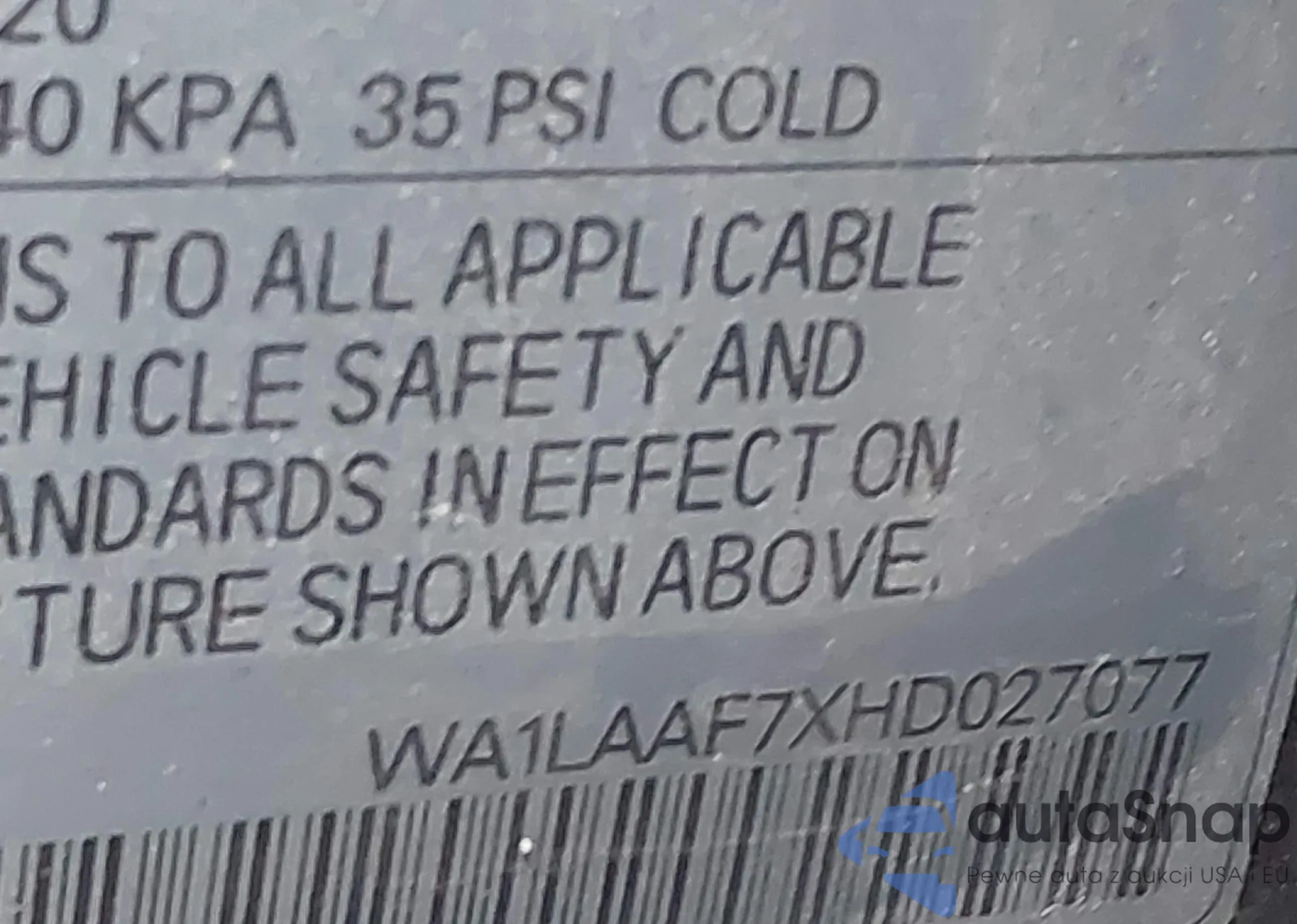 • VIN WA1LAAF7XHD027077