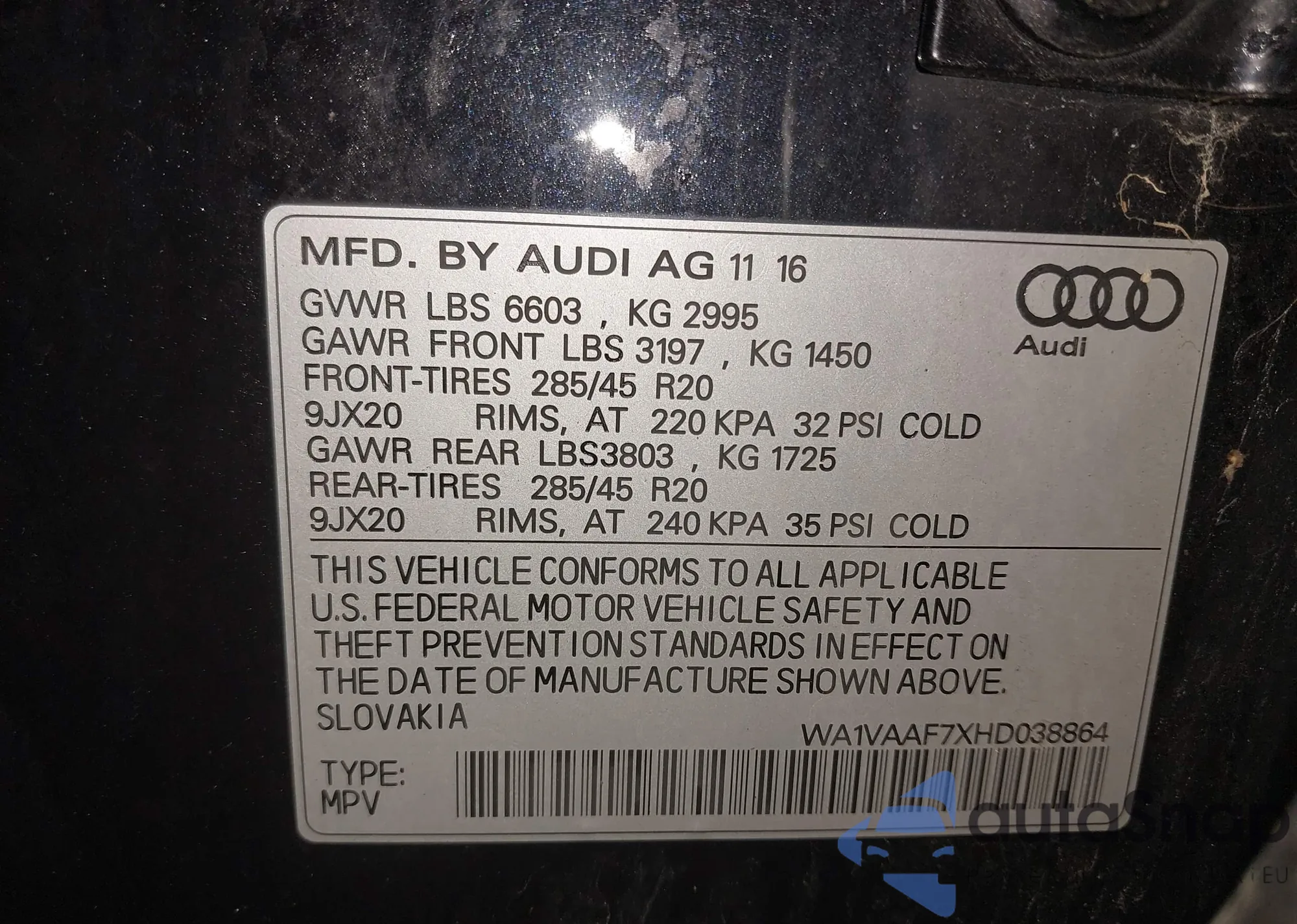 • VIN WA1VAAF7XHD038864