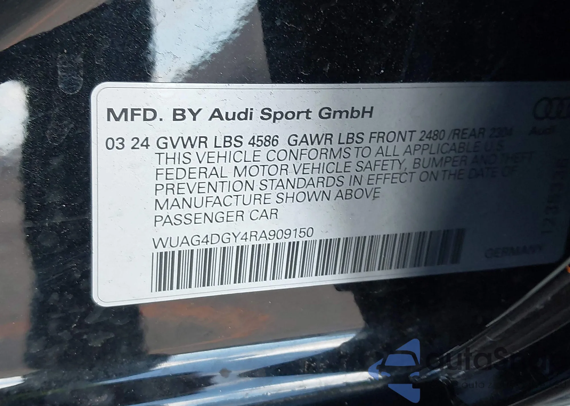 • VIN WUAG4DGY4RA909150