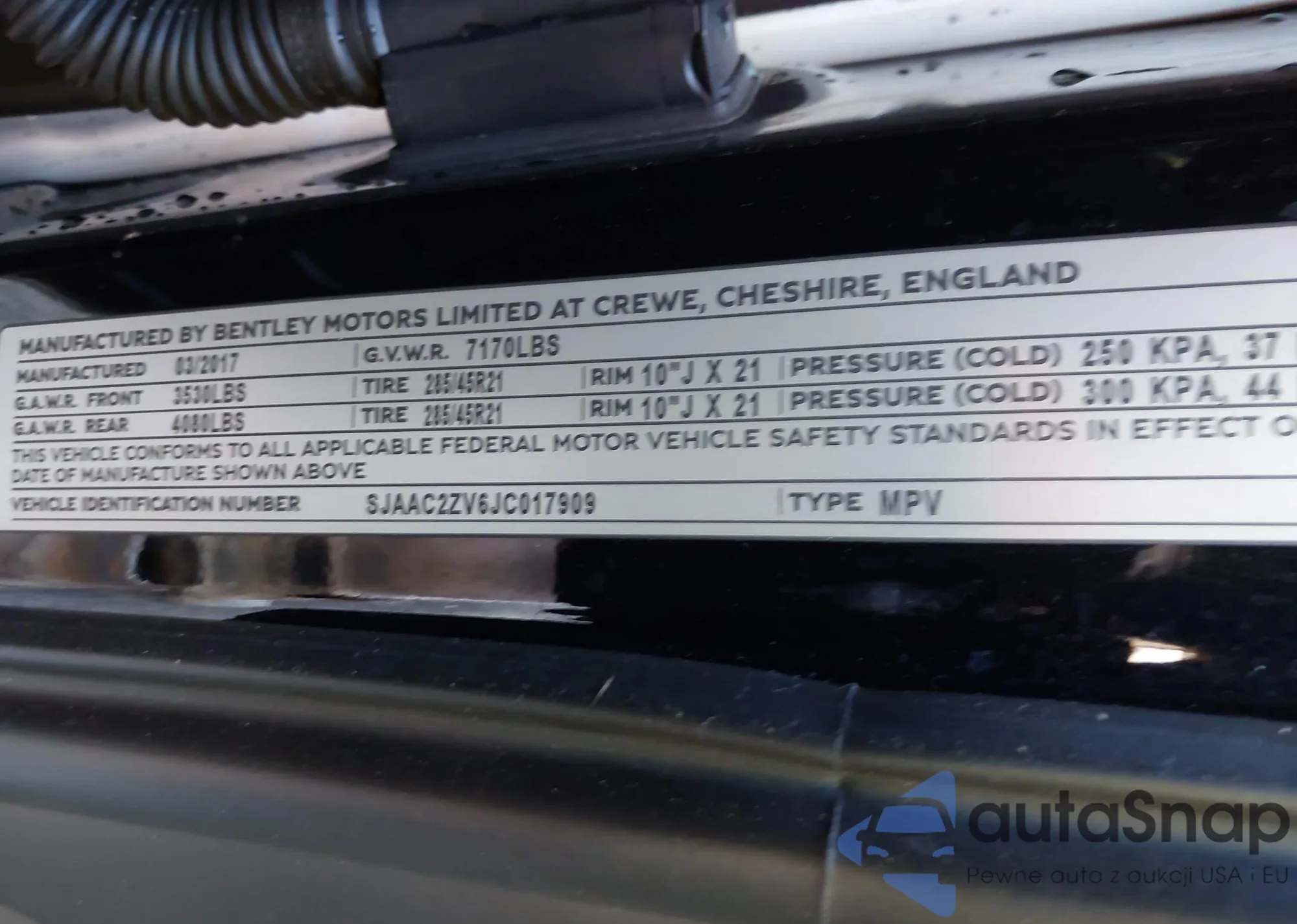 2017 Bentley Bentayga z USA, uszkodzony, nr VIN SJAAC2ZVXHC012982