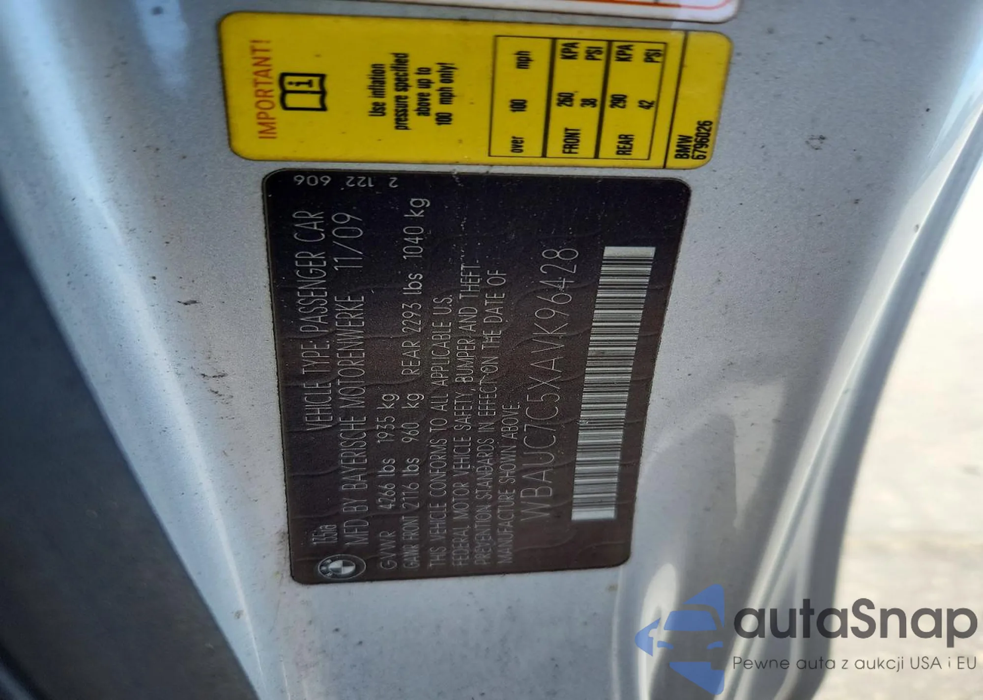 LOT: 72166625 VIN: WBAUN93519VK41111