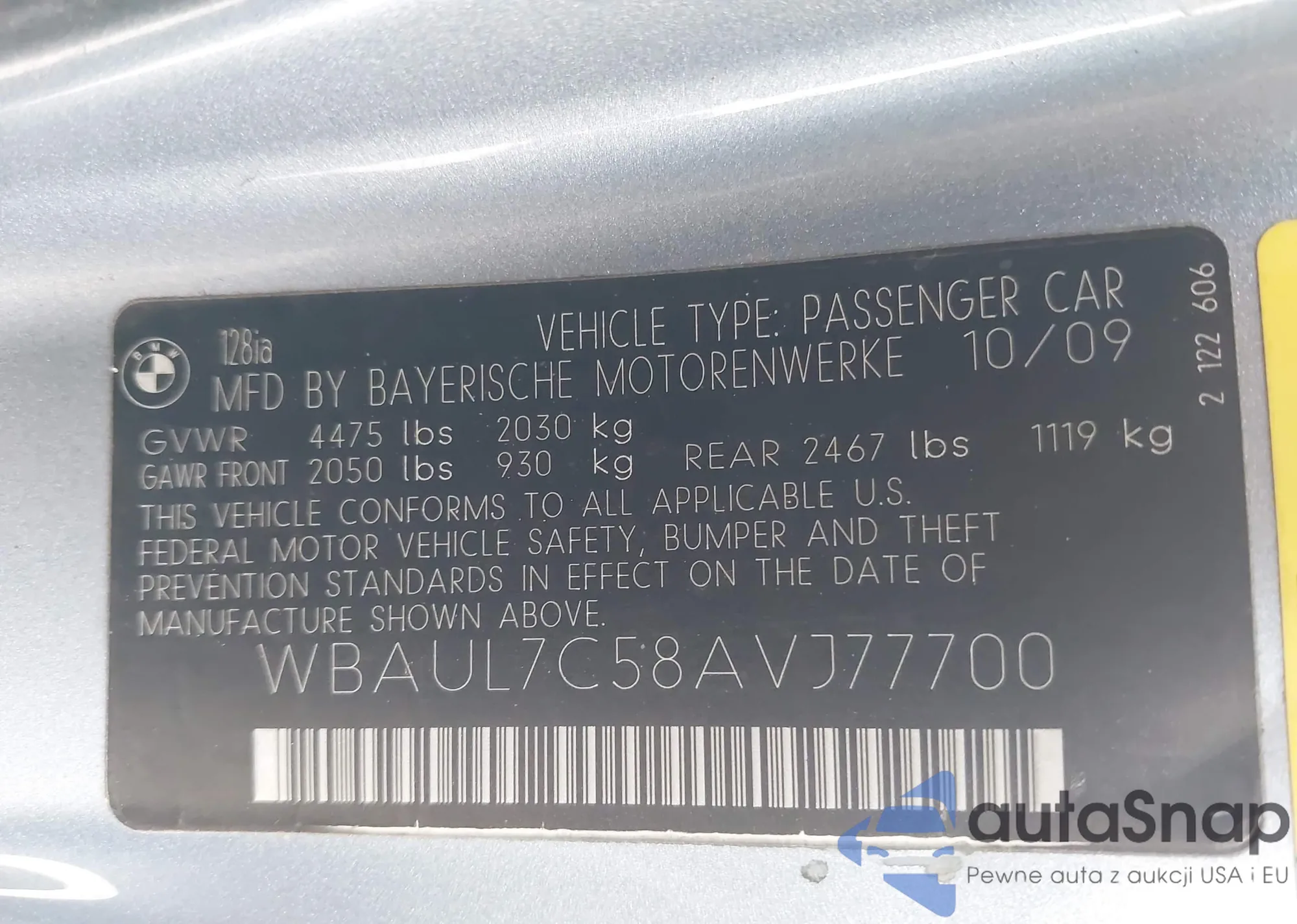 LOT: 44396718 VIN: WBAUP7C58BVP21229
