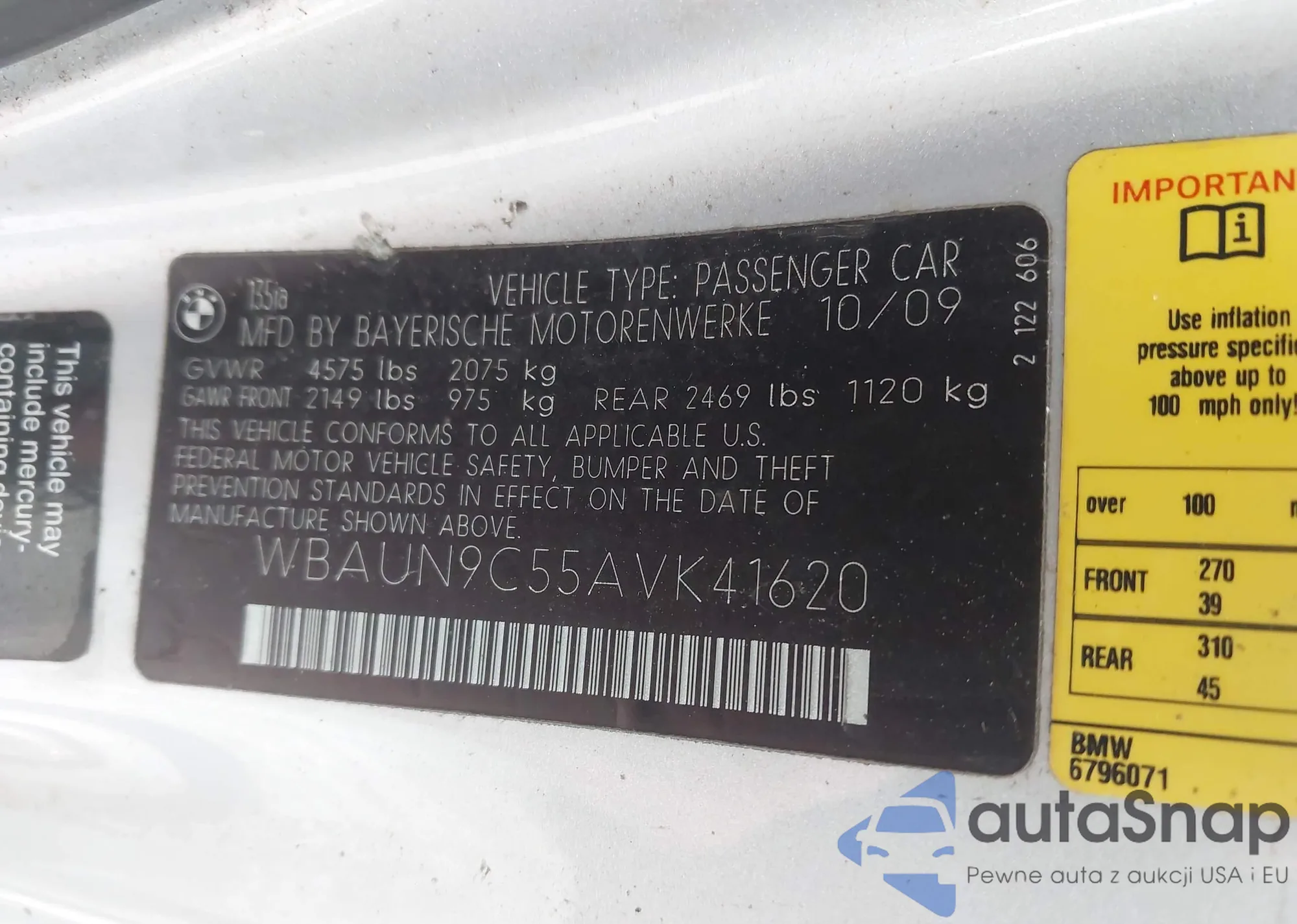 LOT: 44414979 VIN: WBAUP93569VF49243