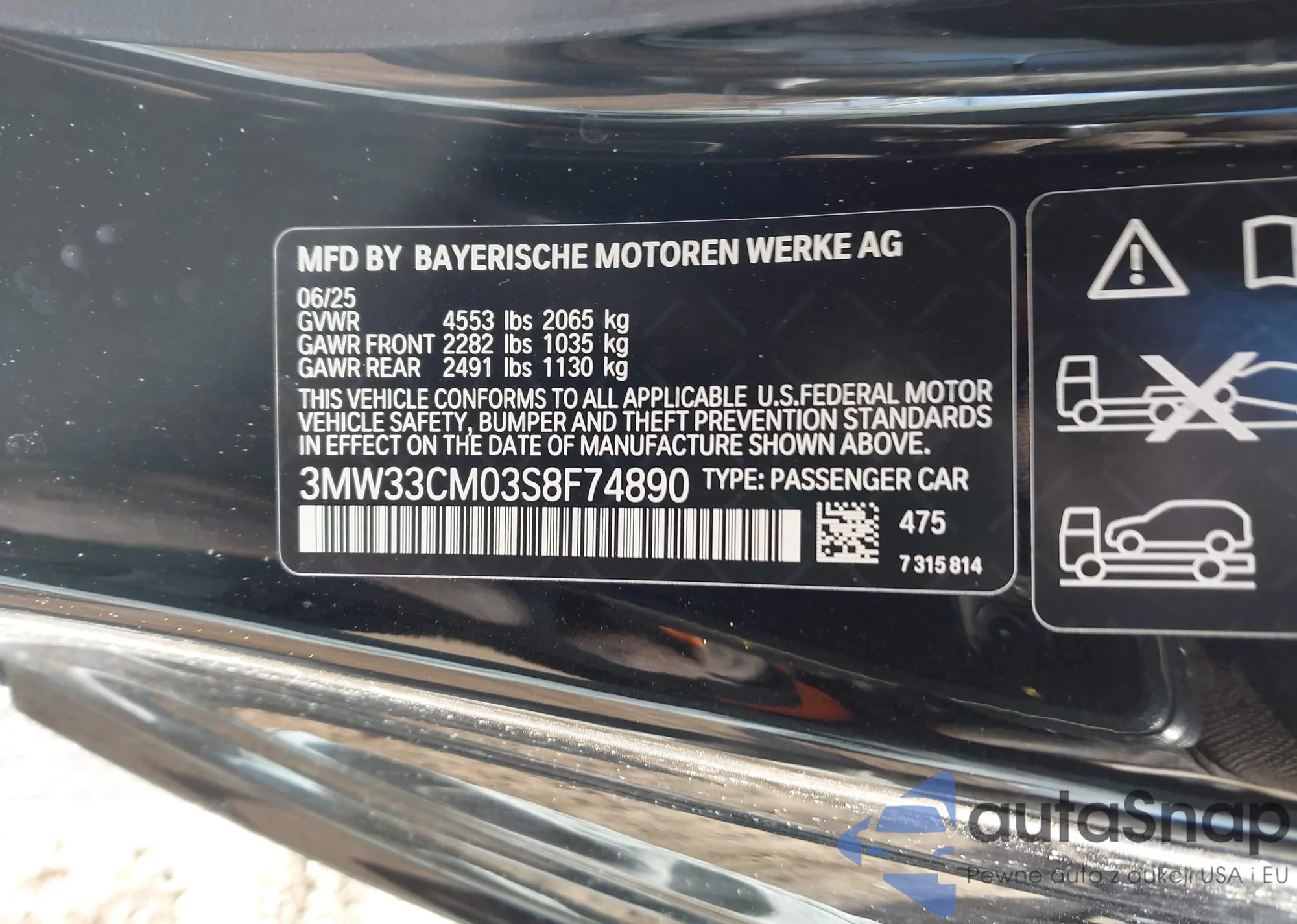 • VIN 3MW33CM03S8F74890