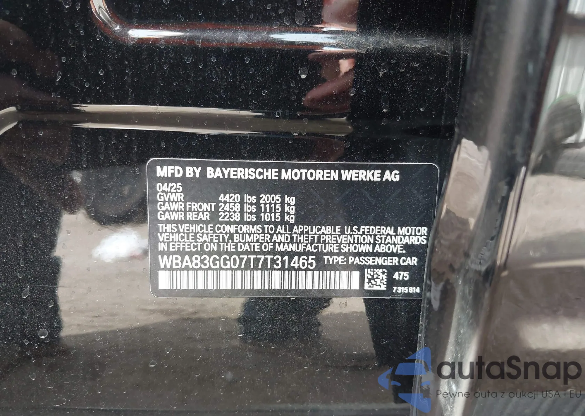 • VIN WBA83GG07T7T31465