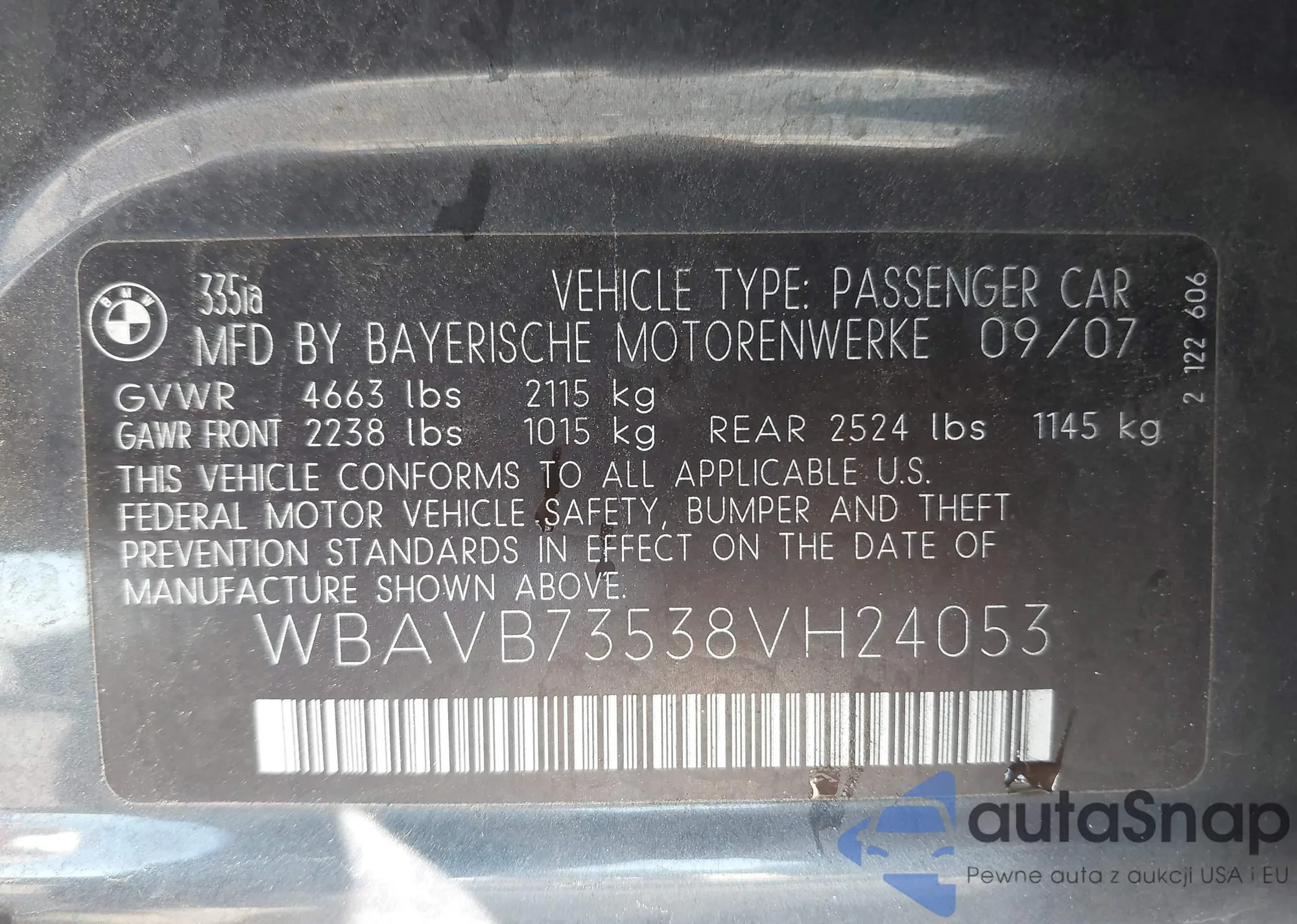 • VIN WBAVB73538VH24053