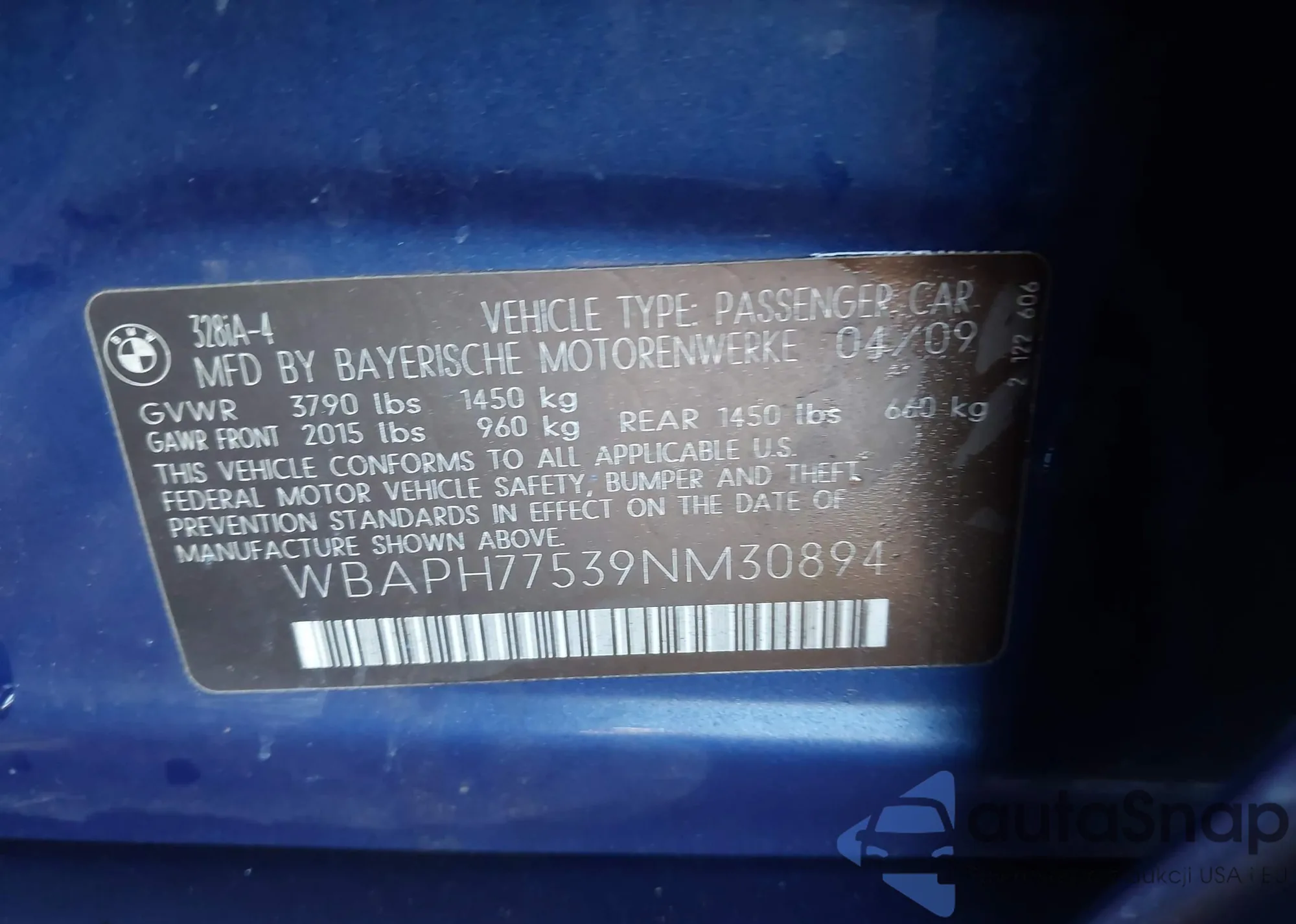 • VIN WBAPH77539NL82961