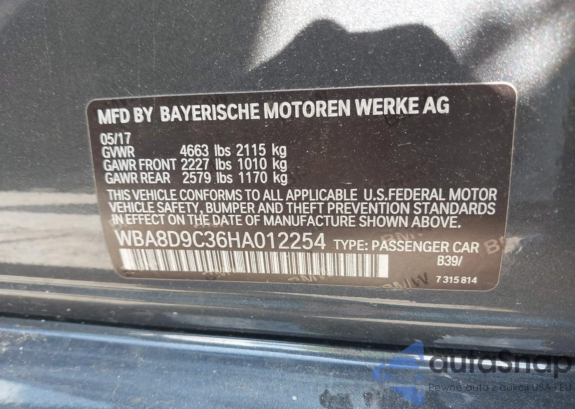 • VIN WBA8D9C36HA012254