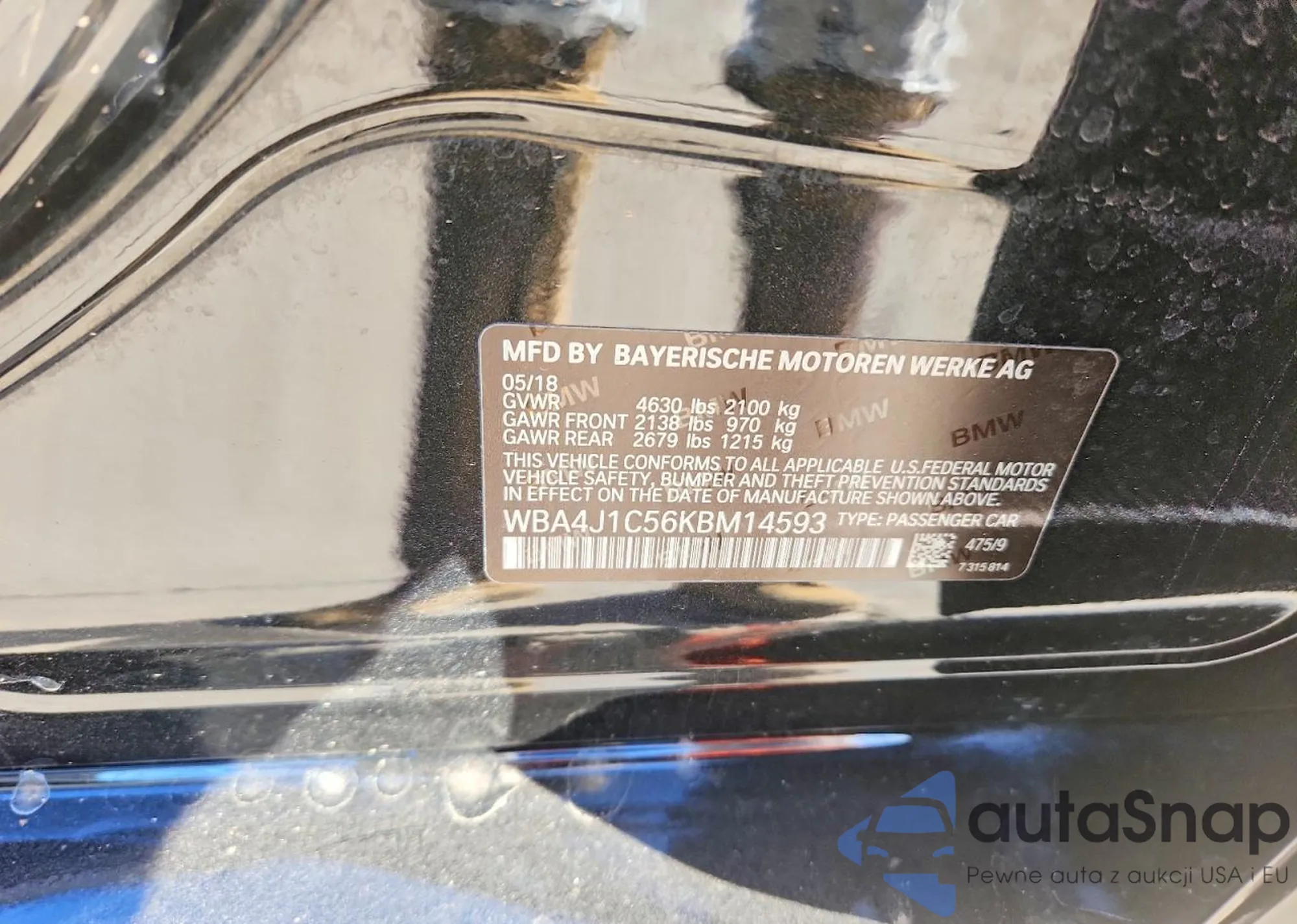 • VIN WBA4J1C56KBM14593