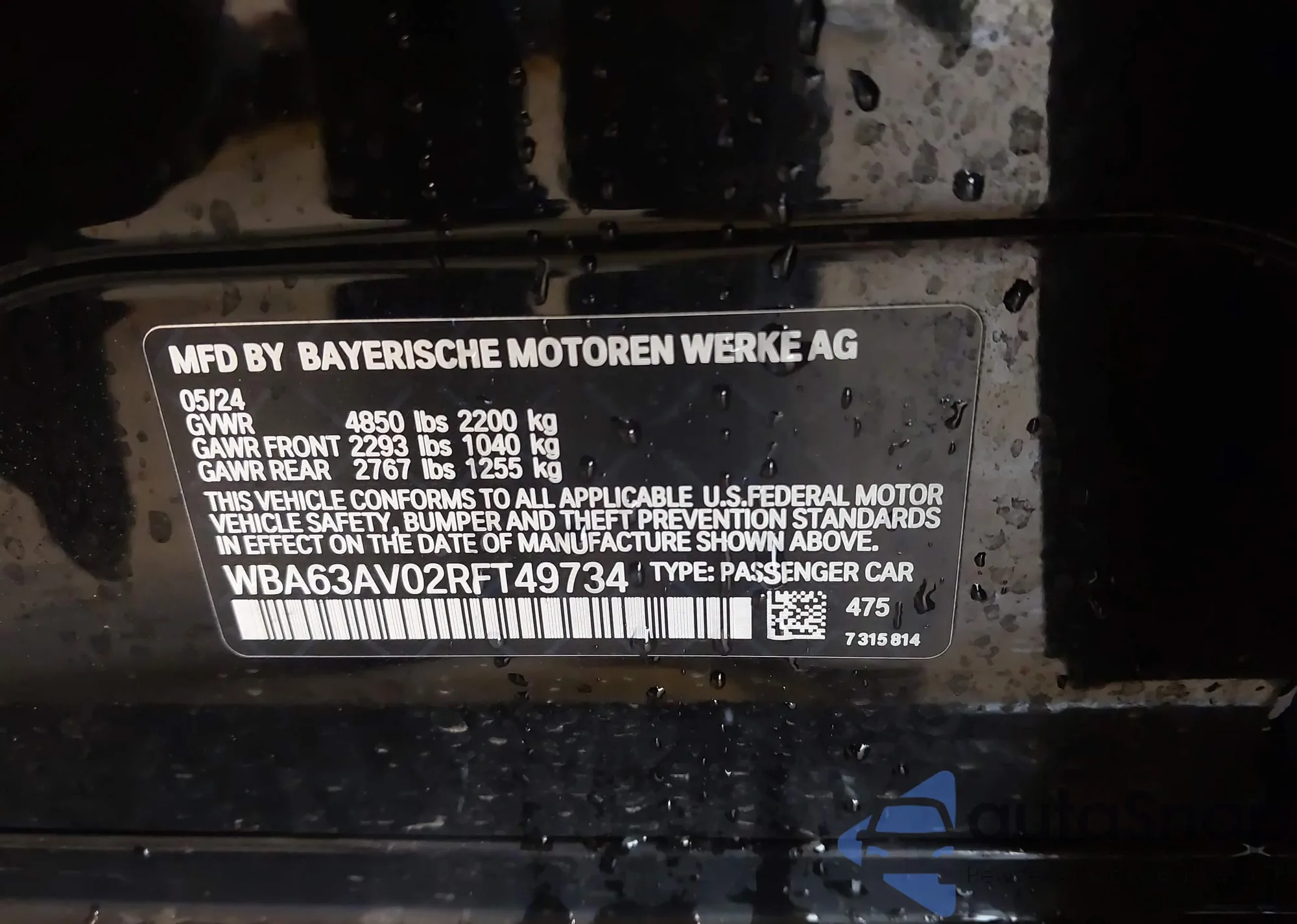• VIN WBA63AV02RFT49734